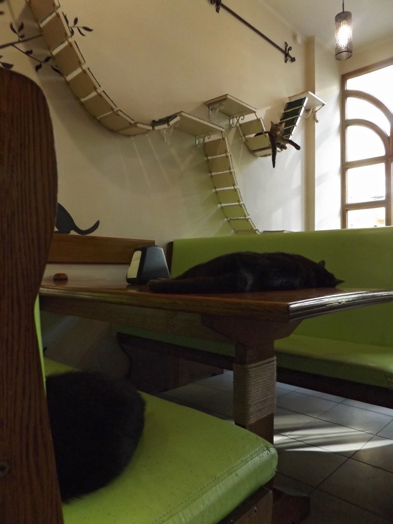 O tym gdzie zjeść, teraz wiele pisał nie będę. Lokali jest sporo, każdy znajdzie coś dla siebie ceny niskie, wybór wielki. Wspomnę tylko, że pewnie jestem na czarnej liście restauracji Цісар, gdzie wmóciłem czyjąś zupę grzybową, którą mylnie podano mnie… a ja cóż, byłem głodny to zjadłem i nie oponowałem:P A jak najdzie was ochota na kawę – a będąc we Lwowie na pewno – to udajcie się do Cafe Cat, na ulicy… Stefana Bandery, gdzie w przyjemnej kawiarni napijecie się kawy oraz pobawicie z masą kotów tam zamieszkujących, SANEPID by płakał, ale co tam 🙂