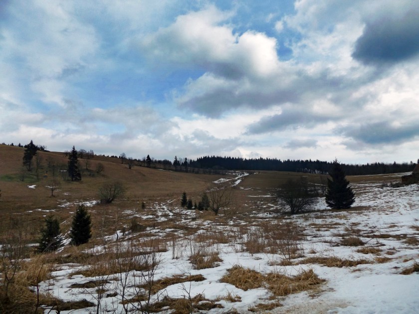 Na Przełęczy Trzech Dolin zima w odwrocie, po śniegu prawie nie ma już śladu, ostał się jedynie na wyższych partiach Waligóry, Suchawy czy czeskiego Szpicaka. Cała reszta terenu to błocko zmarznięte oraz tony upierdliwego i topniejącego lodu.