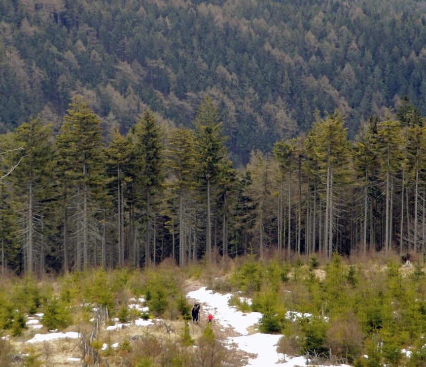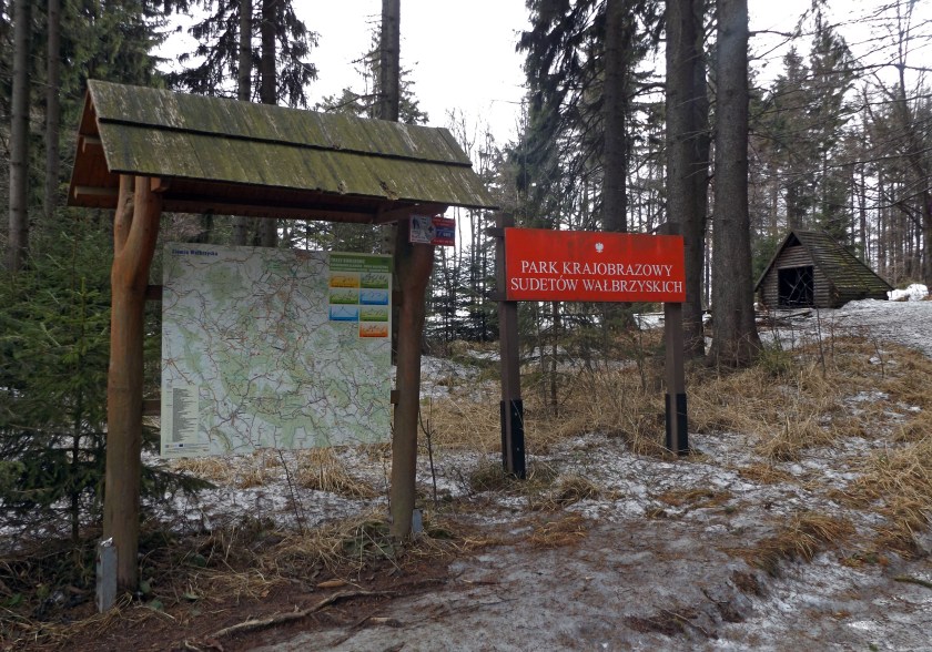 Do najwyższego szczytu czeskiej części Suchych Gór (Javoří hory) wiedzie czarny szlak dalej przekazujący pałeczkę niebieskiemu i zielonemu. Pierwsza część trasy zaczyna się na Przełęczy pod Waligórą i lasem dość łagodnie ciągnie się poniżej Włostowej i Suchawki. Ten fragment choć dość spokojny i bez większych podejś/zejść, był dość srogo oblodzony i pośpiech nie był wskazany.