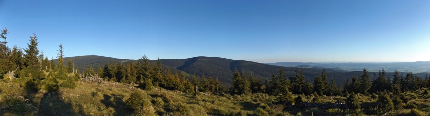 Z wieżą to w ogóle smutna sprawa, bo wcale nie musiała skończyć jak skończyła – sądząc po zdjęciach i pocztówkach była to imponująca konstrukcja, która niestety po wojnie nie doczekała się należytej opieki, podupadła i w końcu została zburzona… Niedługo jednak rozpocznie się budowa nowej, której podstawa stanie w miejscu obecnych ruin. Czekam na to niemało, bo jeśli już dziś ze Śnieżnika można łapać tak piękne widoki to co dopiero będzie gdy pojawi się wieża 🙂