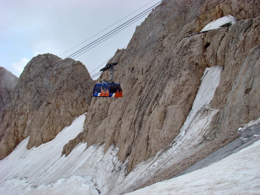 Tak też mijają nam 2-3 godziny, szwędamy się po lodowcu, zahaczamy o via ferratę, poimy się Paulanerem na wysokości 3250 m.n.p.m., zachwycamy się widokami, dziwimy, że kolejka w czasie siesty ma wolne i trzeba czekać więcej niż się zakładało… i mimo wszystko, na końcu cieszymy się z tej całej kupy stali, która umożliwia wjazd i zjazd na górę, bez niej musielibyśmy zejść na nogach i zapewne zawstydzić Kukuczkę, znając nas zrobilibyśmy wiele szumu 😀