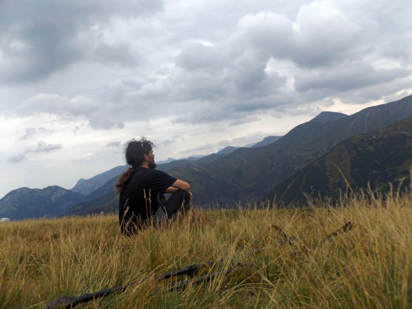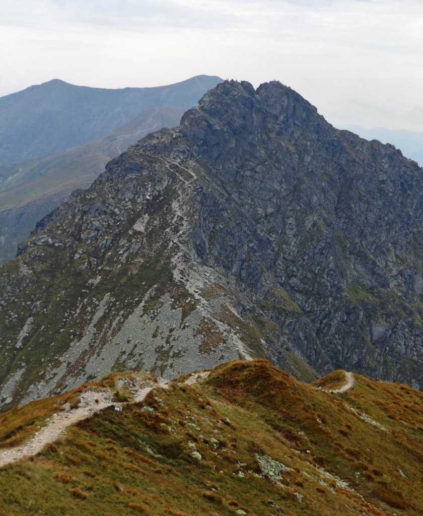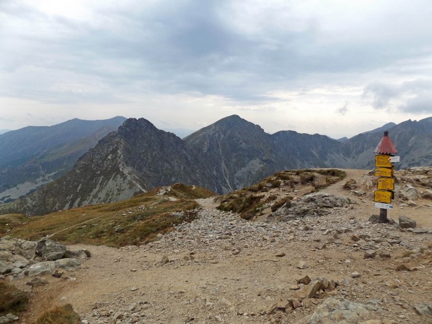 Mimo wielkiego zachmurzenia jest gorąco i tylko silniejsze podmuchy wiatru od czasu do czasu przypominały, że to już koniec sierpnia. Odcinek na Rakonia choć długi jest dość łagodny, z każdym krokiem jednak okolice robią się bardziej dramatyczne – spoglądając na Wołowiec większą uwagę przykuwają poszarpane Rohacze oraz pozostałe Słowackie szczyty.