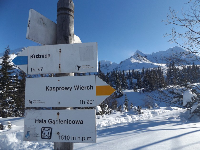 Zimą, przybywając do Zakopanego rankiem dostać się można tam na trójnasób – dwoma szlakami z Kuźnic, oraz łatwiejszym czarnym z Brzezin. To właśnie ten drugi wybrałem. Trzeba się jednak na początku namęczyć by znaleźć odpowiedni doń bus, każdy kolejny kierowca odsyłał do następnego i dopiero kurs do Małych Cichych jechał w odpowiednim kierunku.