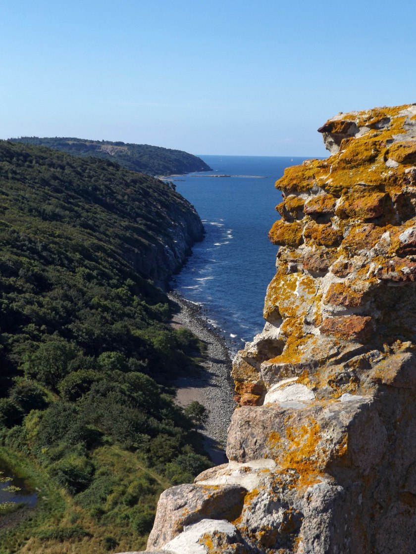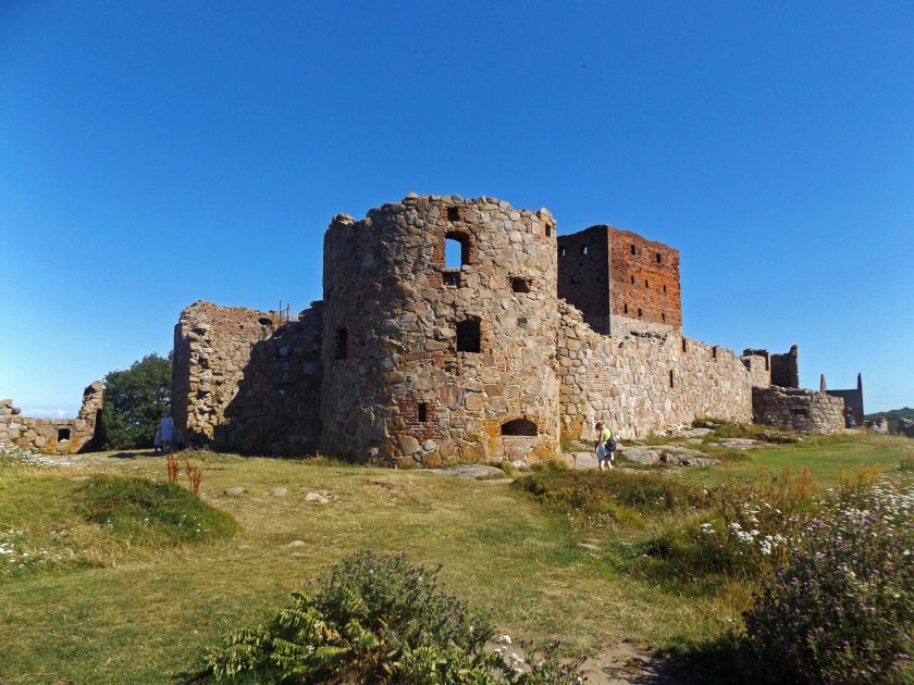 Oto przed nami pozostałości po największych fortyfikacjach północnej Europy. Zamek, którego początki datuje się na środkowe lata XIII wieku był potężną warownią, która – tak jak sama wyspa – przez wieki przechodziła z rąk do rąk (duńskich i szwedzkich). Niezmienne jednak było jego strategiczne położenie, wzniesiony na wzgórzu, niedostępny od morza zamek był doskonałym punktem obserwacyjnym – wystarczy powiedzieć, że stając na klifach widzieliśmy wybrzeże Szwecji, o zaskakującym desancie z północy nie było więc mowy.