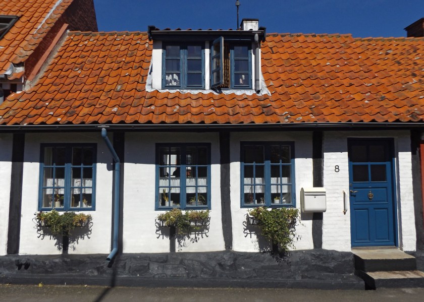 Pora na powrót do cywilizacji. Jest on dość specyficzny. Wychodząc z lasu nagle trafiamy do… Anglii. Typowo wyspiarskie niskie ceglane domki tworzą ulicę Strandgade i są dość niecodziennym na Bornholmie widokiem. Co więcej, miejscowość Sandvig, której ulica jest zaczątkiem dość mocno wybija się na tle wcześniej odwiedzonych miasteczek. Owszem, sporo tam szachulcowej zabudowy a niskie domki jednorodzinne w pobliżu klasycznych wędzarni tworzą typowy dla wyspy krajobraz.