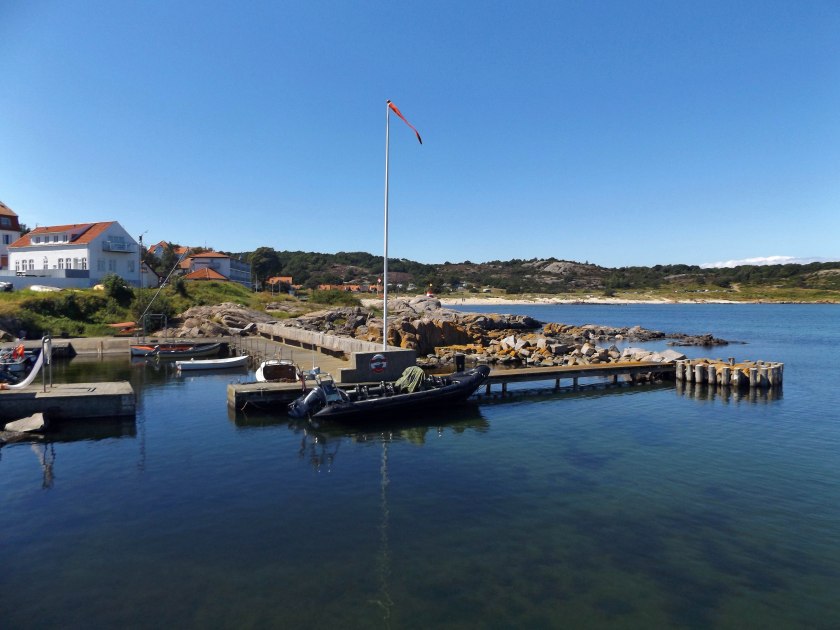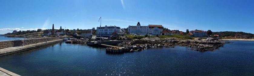 Kolorowe drewniane domki kontrastujące z prostotą strefy gastro, mała piaszczysta plaża, możliwość wypożyczenia kajaków, rejs łodzią, piwko z widokiem na Szwecję i wielkie statki handlowe prujące przez Bałtyk…