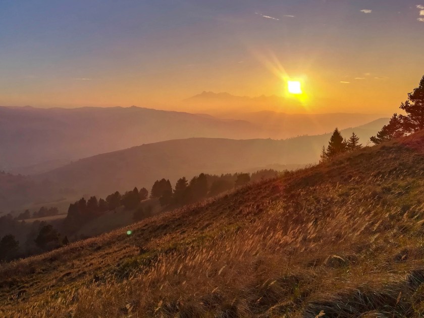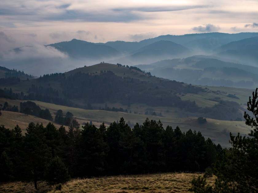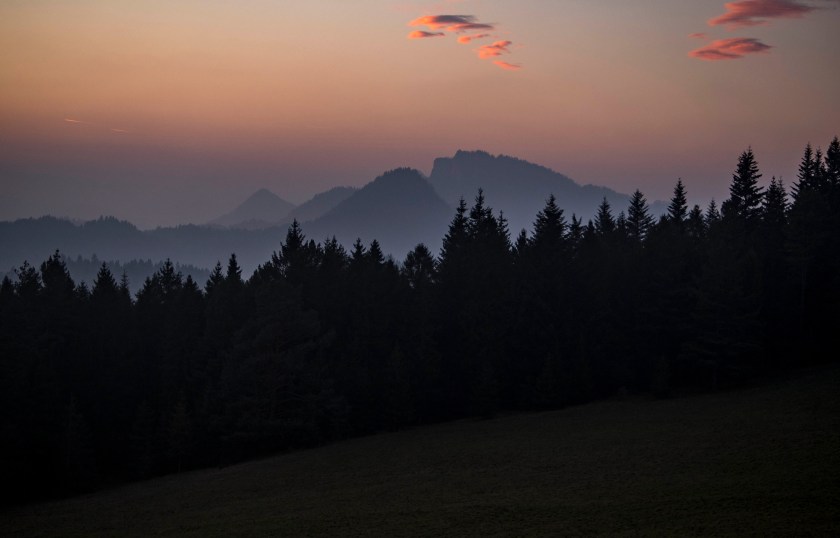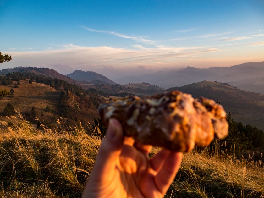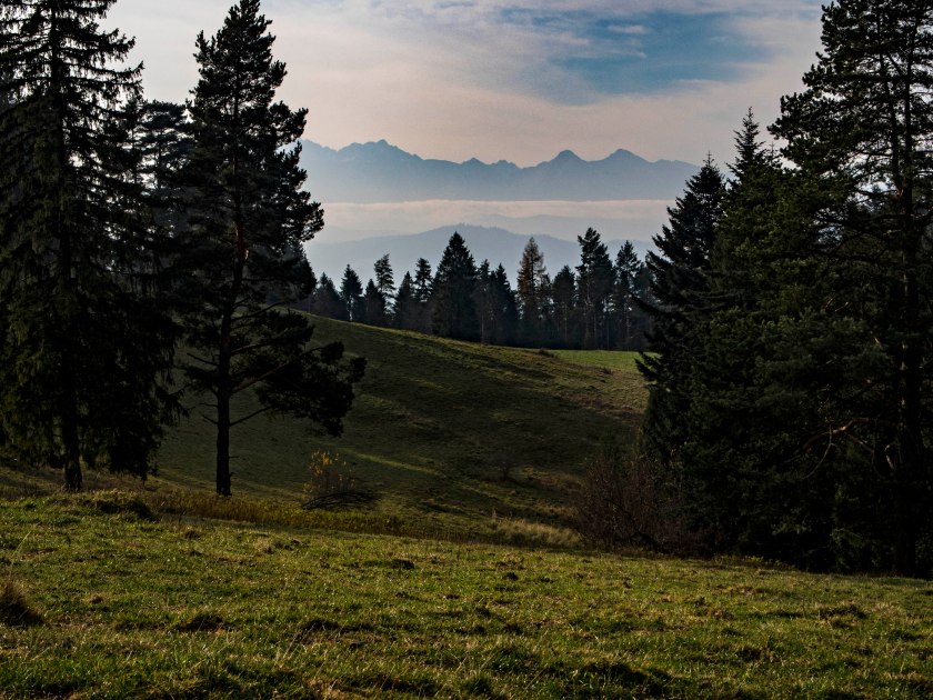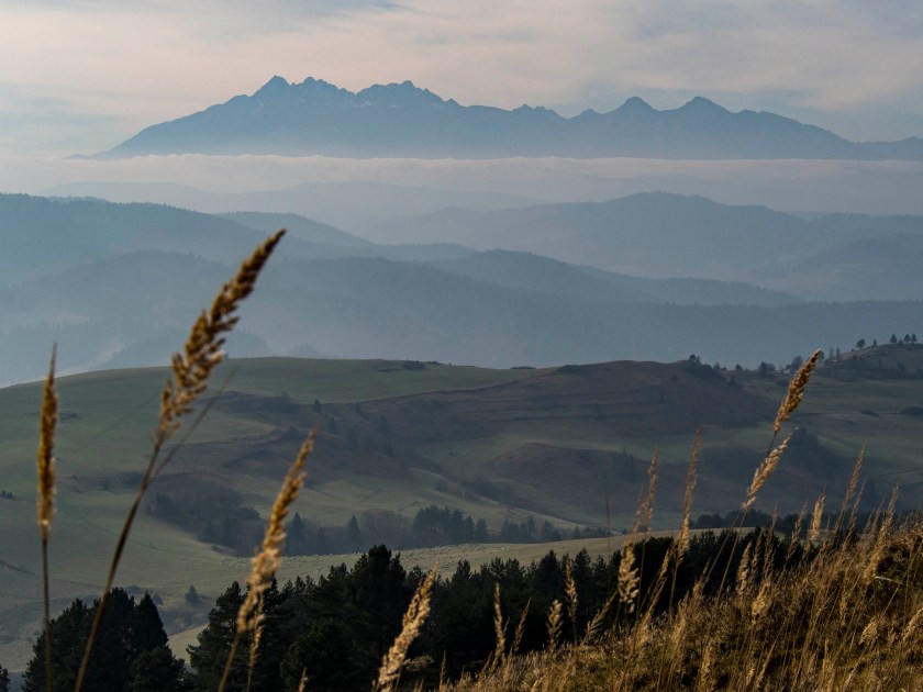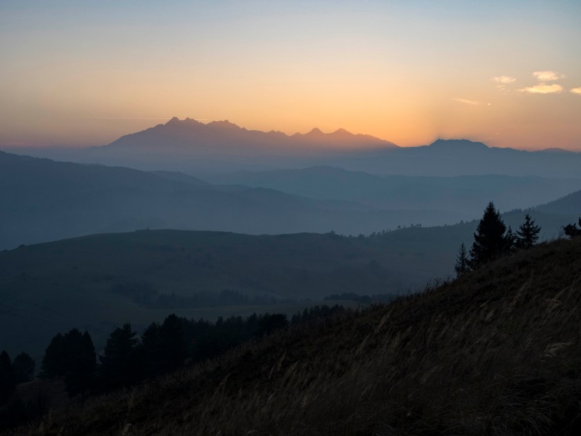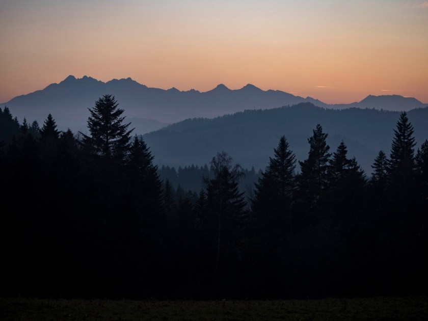 Wspaniała (naprawdę!) panorama Tatr i słowackich Pienin robi wrażenie. To tam kontemplując widok, zjadając świętomarcińskiego rogala decydujemy się na porzucenie wcześniejszych planów i powrót w to miejsce na zachód słońca. Decyzja niezwykle dobra 🙂