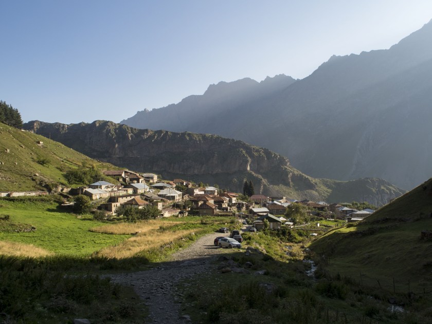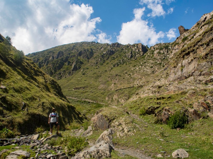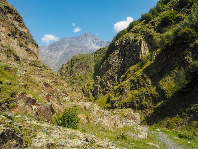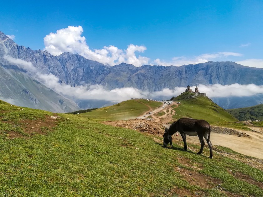 W każdym razie do kościoła można dojść bardzo urokliwym wąwozem zaczynającym się zaraz za wioską Gergeti, górującą nad Stepancmindą. Jak w mieście bez problemu można dostrzec raptowny rozwój ze względu na coraz liczniej przybywających turystów, tak we wsi czas jakoby się zatrzymał. Tam też, jeśli zagapiliście się wcześniej można uzupełnić zapasy świeżej wody.