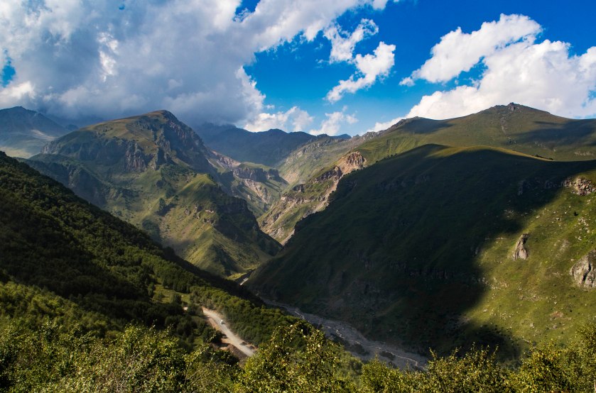 Nad Stepancmindą słońce dawało do wiwatu, jednakowoż nad Kazbekiem chmur nie brakowało, nie wyglądały jednak na tyle groźnie by nie ruszyć tyłka na rozgrzewkę.