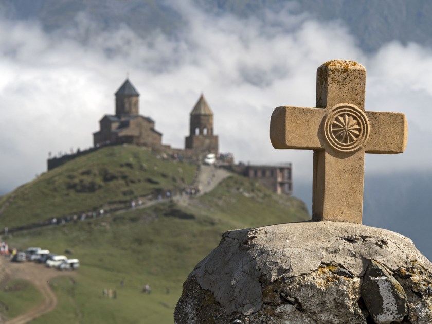 Idealne na to wydaje się podejście pod najbardziej znaną świątynię Gruzji, kościół Świętej Trójcy. Fakt, do pewnego momentu przyświecała nam taka myśl, ale rzut oka na niemożebne tłumy szybko ją odgonił.