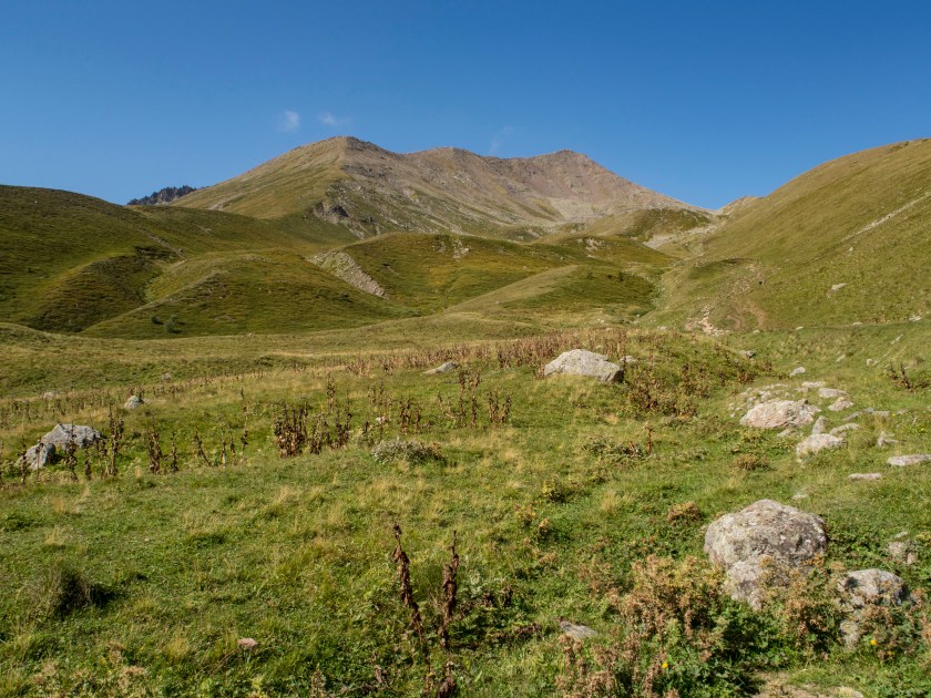 Spod kościółka droga jest wyraźna, szlaki wychodzone, nie ma opcji trafić w ścieżynkę donikąd. Idziemy zatem. Cały czas pod górę, ale spokojnie, tak by nie złapać zadyszki – tego dnia zastanawialiśmy jak rzeczywiście daleko jest do przełęczy Arsza… i jak przyszło co do czego to dalej niż myśleliśmy (ale o tym później).