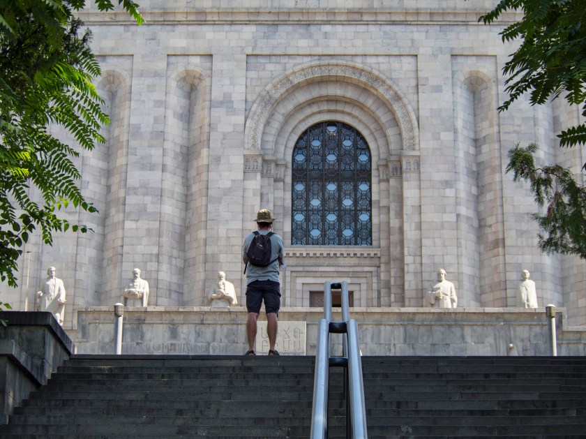 Araratu ni widu, w oczy za to rzucała się Matka Armenia. 22 metrowy pomnik (51 metrów razem z „piedestałem”) kobiety trzymającej miecz spogląda na miasto, ale i dalej ku Turcji. Przypadek? Monumentalny pomnik robi wrażenie, choć podróżujący po wschodzie mogą porównać go do bliźniaczych z innych krajów byłego ZSRR. Wewnątrz „Piedestału” znajduje się muzeum militarne, dziś w większości poświęcone wojnie w Górskim Karabachu, pod czujnym okiem setek ofiar poznać można przebieg tego konfliktu 😦 Opłata za wstęp do muzeum to kwestia osobista, każdy płaci tyle ile uważa, że powinien.