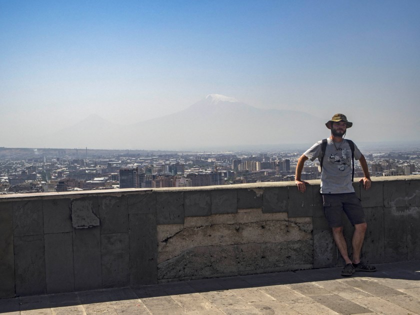 Pobudka i poranna kawa na tarasie nie przyniosła oczekiwanego widoku na Ararat. I nie chodzi tu o złą pogodę czy smog, ale o hotel z naprzeciwka zasłaniający cały widok 😀 Dzień jednak szykował się gorący, na niebie ani jednej chmury.