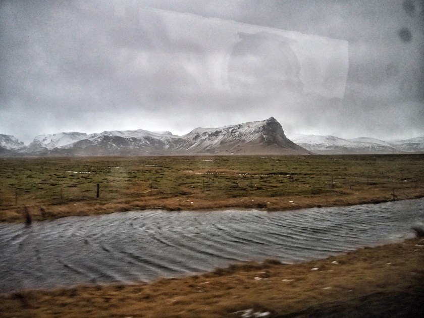 Na starcie każdy z nas dostał tablet, na którym można było śledzić pozycję a także poczytać o wszystkich mijanych ciekawostkach. Pierwsze pół godziny mija jeszcze w porannych ciemnościach, z każdą chwilą jednak robi się jaśniej… co ukazuje jak bardzo deszczowo jest za oknem. Ciemne chmury wisiały nisko, deszcz siąpił, na tamtą chwilę nie wyglądało to dobrze. No, ale to Islandia a pogoda zmienną tam jest 😉 A poza tym, nawet w deszczu widokom było do twarzy 😀