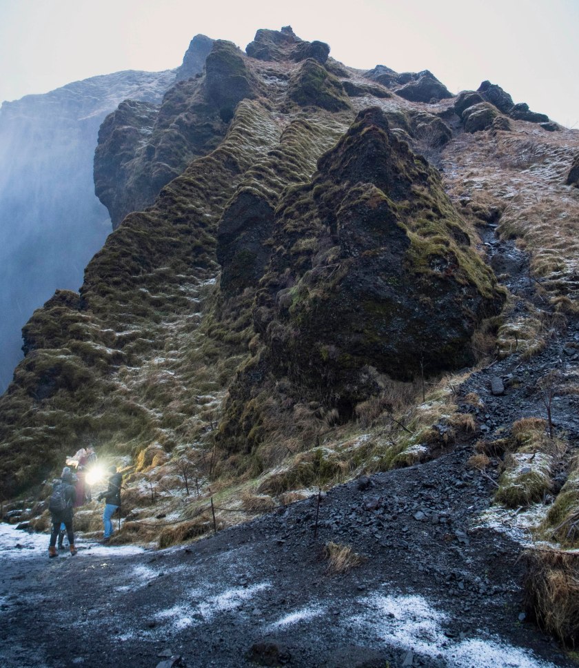 Wiatr, który nas tam powitał był potężny, jakiekolwiek postawienie statywu mogło skończyć się tylko i wyłącznie piękną katastrofą – ba, niektórzy z odwiedzających ledwo trzymali się na nogach. Bazaltowa grota jest wtedy jak wybawienie i można na chwilę schować się przed kolejnymi porywami.
