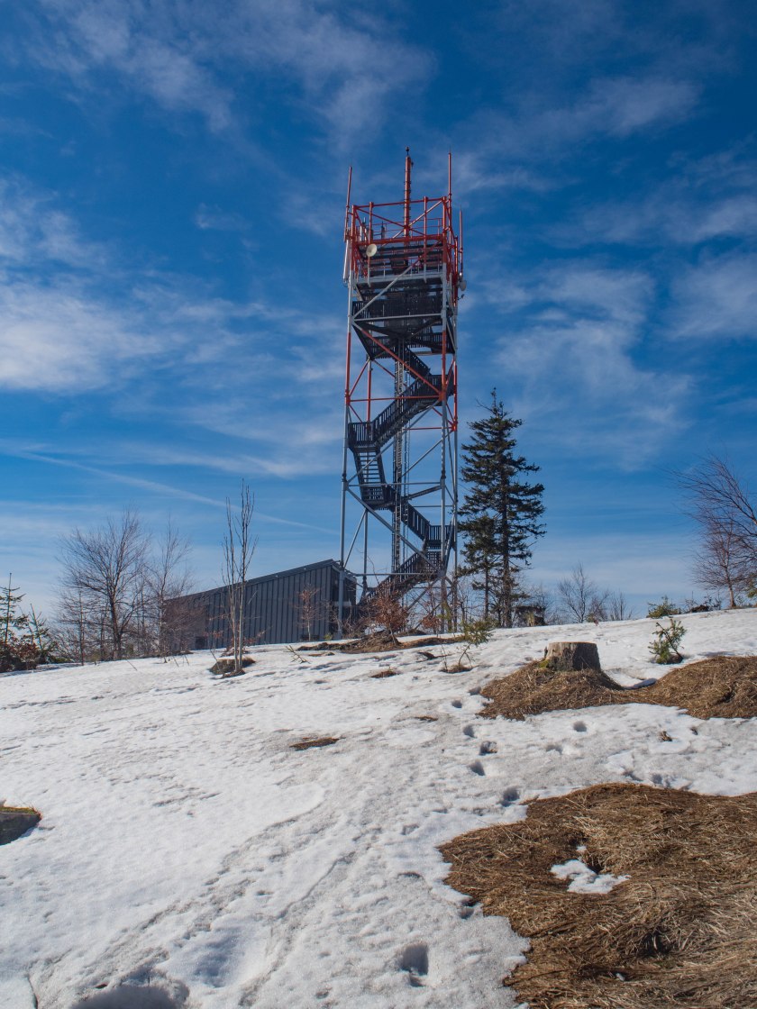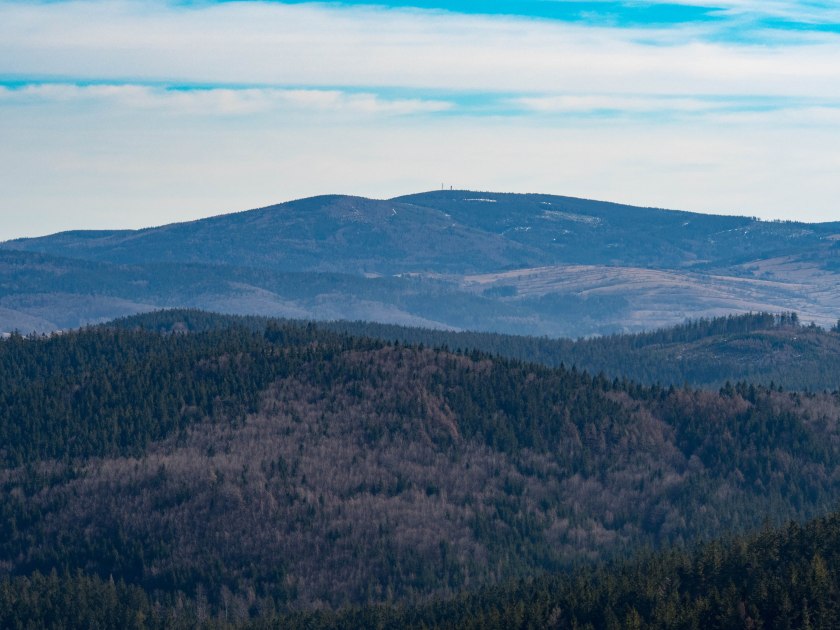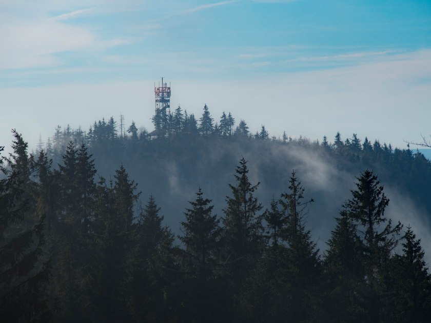A w międzyczasie gdzieś tam pomiędzy drzewami ponownie dało się zabawiać w dalekie obserwacje, na horyzoncie wypłynęła charakterystyczna antena na Cernej Horze.