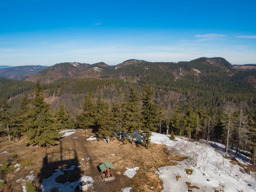 Jeśli nastawiacie się na dalsze petardy krajobrazowe to od razu wam powiem: „hold your horses!”, Siroky Vrch da wam małe co nieco, ale potem witajcie w lesie (co też jest fajne!). 840 metrowy wzgórek, dobrze widoczny ze Spicaka jak nazwa zobowiązuje ma dość szeroki i wypłaszczony szczyt pozwalający na szersze spojrzenie na Góry Sowie jak i masyw Śnieżnika.