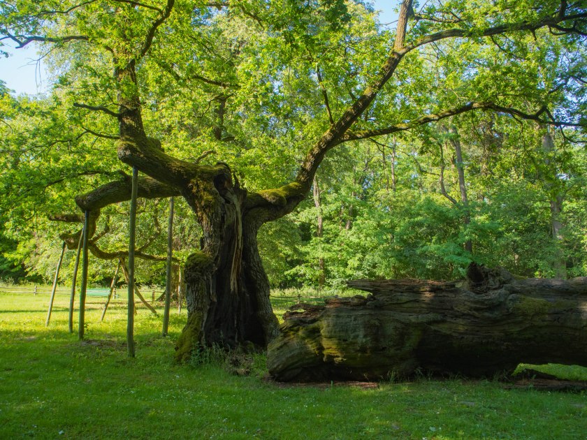 Największą ciekawostką i paradoksem ochrony zabytkowych drzew jest to, że występujący na nich chrząszcz Kozioróg dębosz – uznawany za jednego z większych ‚wrogów’ dębów szypułkowych w Polsce – jest tak samo jak drzewa prawnie chroniony. I mamy zonka. By nie faworyzować żadnej ze stron dęby wspomagane są nieinwazyjnymi dla chrząszczy środkami a same drzewa służą za dawców DNA dla sadzonek, które w okolicach bliższych i dalszych będą miały za zadanie podtrzymać ich występowanie.