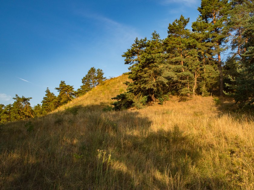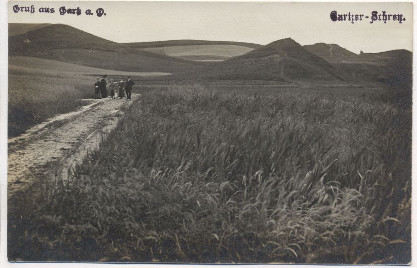 Jeśli jednak ktoś ma dość lasu to można powędrować ponad nim, w pewnym momencie od rowerowej ścieżki odbija szlak prowadzący na strome zbocza pradoliny. Pośród stepowych traw wychodzimy na ścieżkę skąd podziwiać można tak pofałdowania wzgórz jak i Odrę czy Gryfino. Przedwojenne czarno-białe zdjęcia doskonale pokazują jak bardzo pagórkowaty jest to teren. Jest pięknie choć słońce smaży niesamowicie.