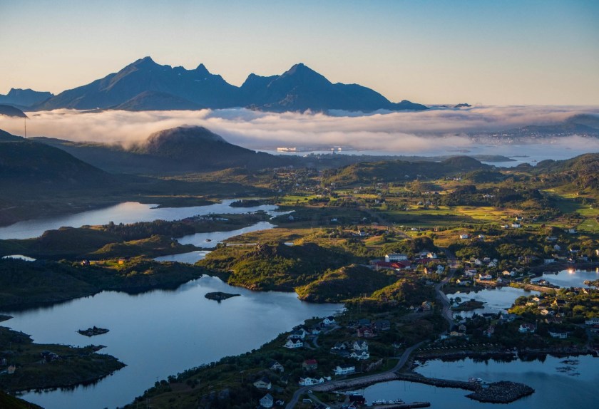 Vestvågøy to druga największa wyspa Lofotów i nie bez przesady można nazwać ją rolniczym centrum archipelagu, szerokie doliny pełne farm rozciągają się pomiędzy dramatycznie urokliwymi szczytami, to chyba też jedyna wyspa gdzie wszechobecny zapach ryb ma silną konkurencję w postaci obornika i innych rolniczych woni 😉