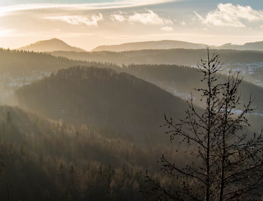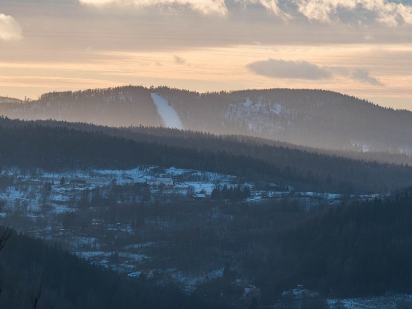 Wałbrzych, Góry Kamienne, „uzurpator” Chełmiec czy nawet dalekie Karkonosze w ostatnich promienach słońca prezentowały się zjawiskowo. I co ciekawe ludzi jak na lekarstwo a przecież dostępność platformy cjest hyba nawet większa niż ma to miesce z Borową, czarny szlak i kawałek czerwonego z ul. Świdnickiej w Wałbrzychu to maksymalanie 45 minut niezbyt ciężkiego marszu.