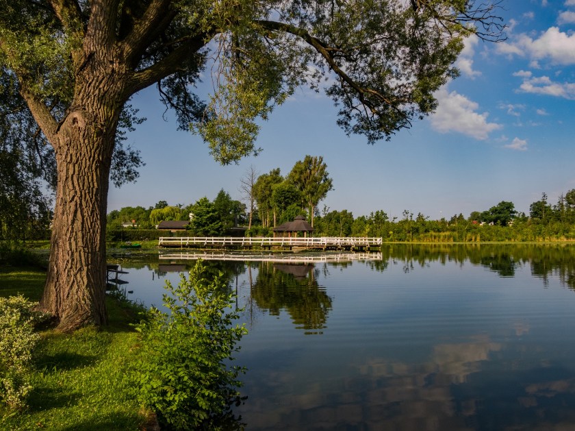 Po wizycie w Skansenie idealnym wydaje się podejście nad jezioro, wszak na drewniane molo jest stamtąd żabi skok.