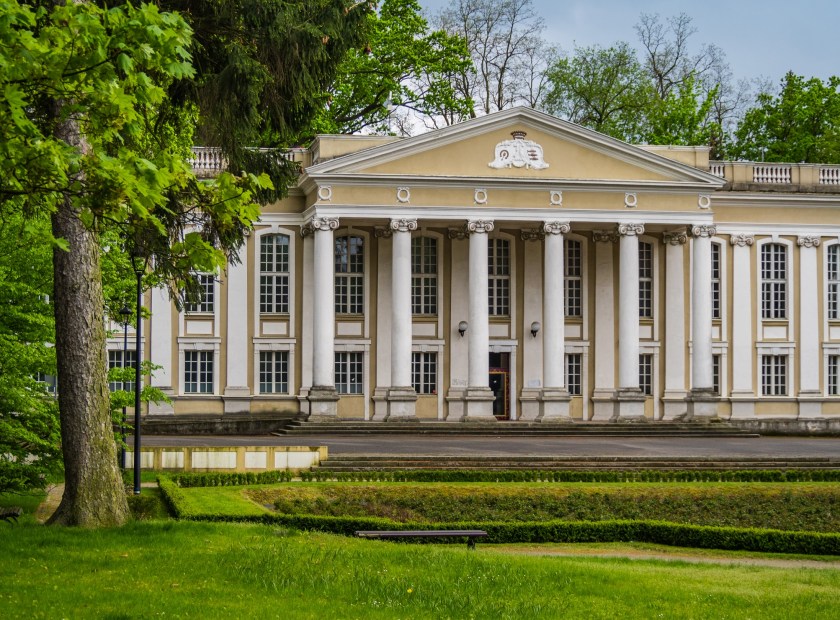 Określany dziś jako klasycznie neoklasycystyczny pałac wybudowany został w XIX wieku dla rodziny Gajewskich, niegdysiejszych właścicieli Wolsztyna, lecz wówczas będąc budowlą neorenesansową zupełnie nie przypominał tej jaką widzimy dziś. Obecnych kształtów nadał mu w 1911 roku wybitny architekt Roger Sławski na życzenie kolejnego włodarza miasta, hrabiego Mycielskiego. Wiedzieć jednak musicie, że pałac w roku 1945 spłonął i dopiero po 15 latach został odbudowany – i w końcu tę odtworzoną wersję podziwiać można dziś. Tyle tylko, że z zewnątrz. Mieszczące się tam do niedawna hotel i restauracja zakończyły działalność, pałac zamknięty jest na cztery spusty a obecnie kończy się długi spór pomiędzy miastem a byłym dzierżawcą i kto wie, być może nastaną dlań lepsze czasy?