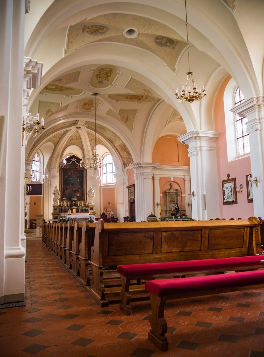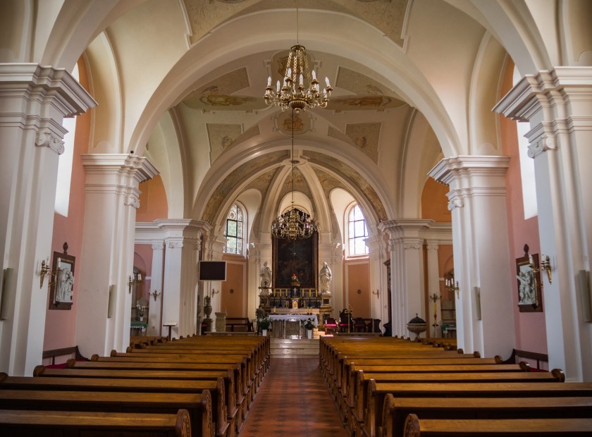 Nie byłbym sobą gdybym nie odwiedził rakoniewickiego kościoła. Barokowa świątynia ma za sobą spory remont z początku XX wieku… I cóż wygląda na to, że ingerencja w oryginalną bryłę i pomysł były tak duże, że kościół zatracił cechy zabytkowe a określenie barok doczekało się przedrostka „pseudo”. No zdarza się. Nie zmienia to jednak faktu, że bardzo mi się spodobały jego wnętrza. Freski na ścianie, spora skromność jak na okołobarokowe zapędy, no działają na mnie takie obrazy.