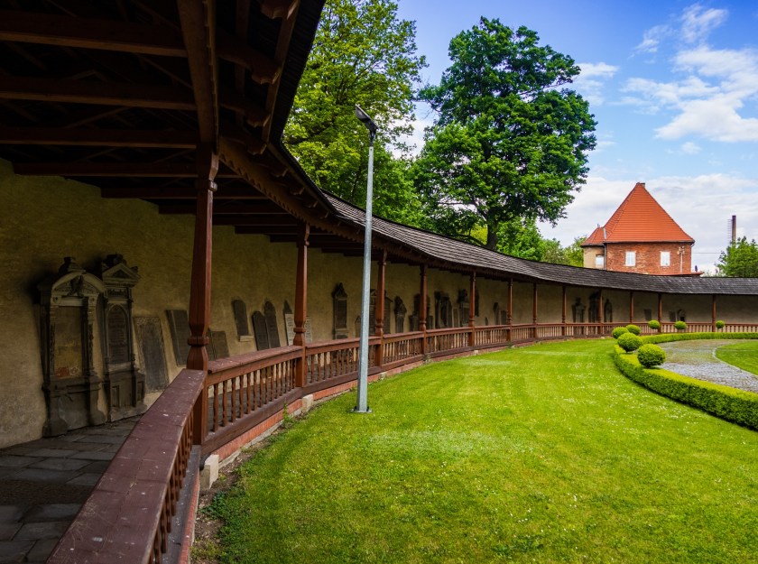 Zdecydowanie warto zatrzymać się tam przy kolejnym obronnym niegdyś kościele. Świątynia pw. Św. Pawła Apostoła znajduje się na niewielkim acz wciąż wybitnym wzgórzu nieopodal stacji PKP. Jej korzenie sięgają aż XIV wieku choć obecna postać to wypadkowa wielu set lat różnego rodzaju przebudów i zmian, barok zajął tutaj miejsce gotyku, choć nie wyparł go całkowicie. Co mi się najbardziej spodobało? Ponownie wykorzystanie krużganków do stworzenia istnej ściany pamięci, ale i sama zielona okolica kościoła tworząca z nim spójną całość. Pięknie się tam przejść na zwykły spacer.