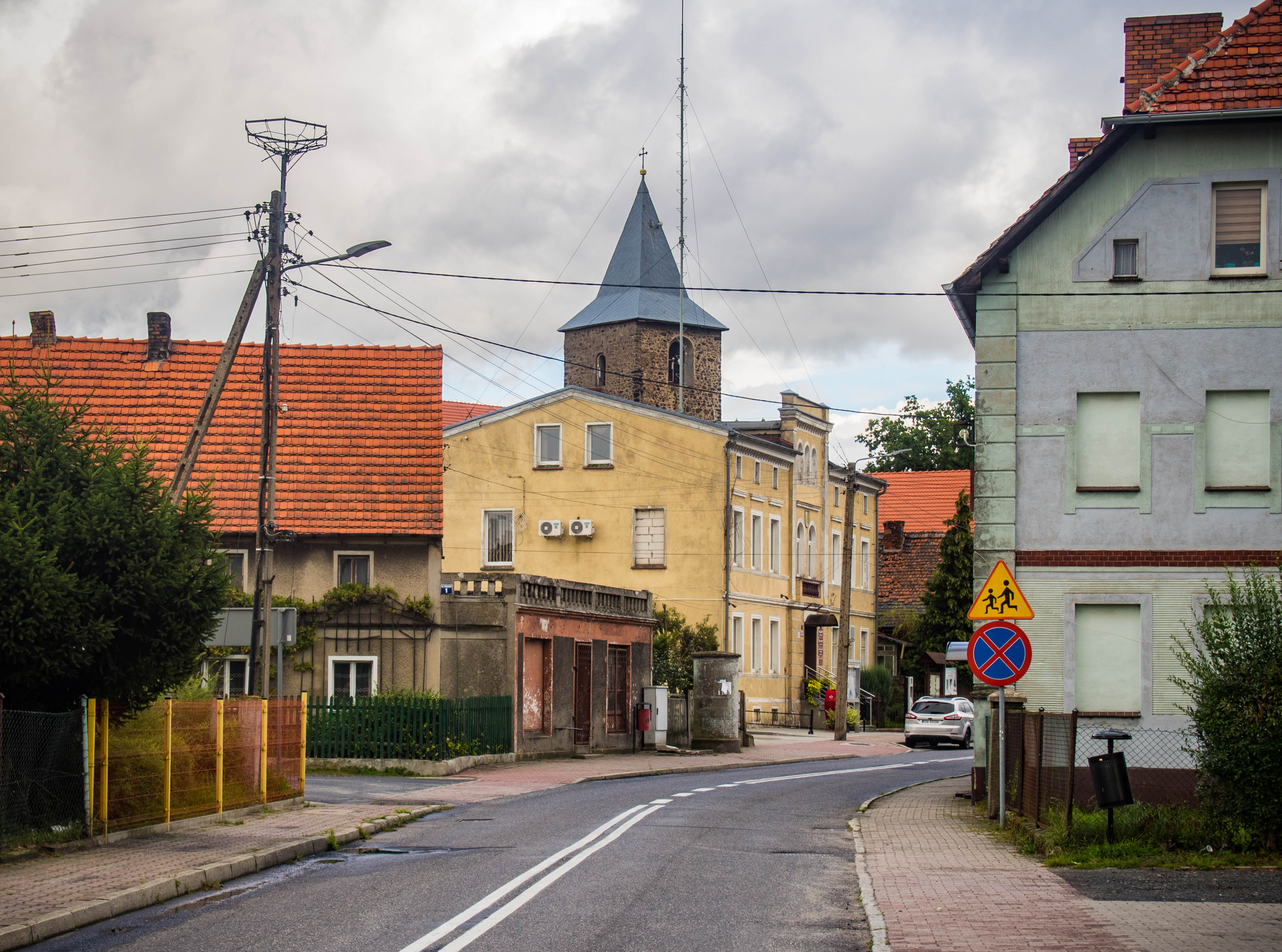 Zdjęcia owej reprezentacyjnej kamienicy wam oszczędzę, macie spojrzenie na główną ulicę we wsi, czyli ul… no Główną.
