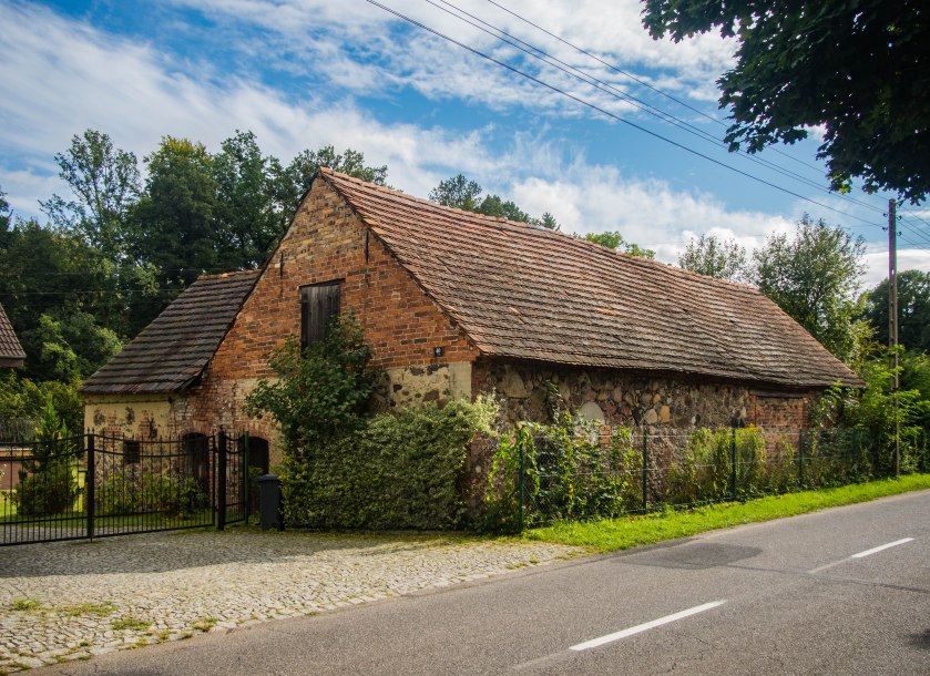 Tuż przed mostkiem kolejowym należy skręcić w prawo ku pozostałościom folwarku… niekoniecznie należącego do pierwszych właścicieli majątku, rodziny von Blankensteinów. Mamy tu pokaźny budynek gospodarczy z żółtej, łużyckiej cegły, dość świeżą stodołę (bo z 1940 roku) no i barokowy dworek zamieszkały i całkiem zadbany – choć pozbawiony już detalu z epoki przez co zupełnie nie zwraca na siebie należytej uwagi. Jednak to dopiero w parku nieopodal znajdziecie najmłodszą z lipińskich posiadłości, pałacyk z 1860 roku. I z nim jednak czas nie obszedł się łagodnie.