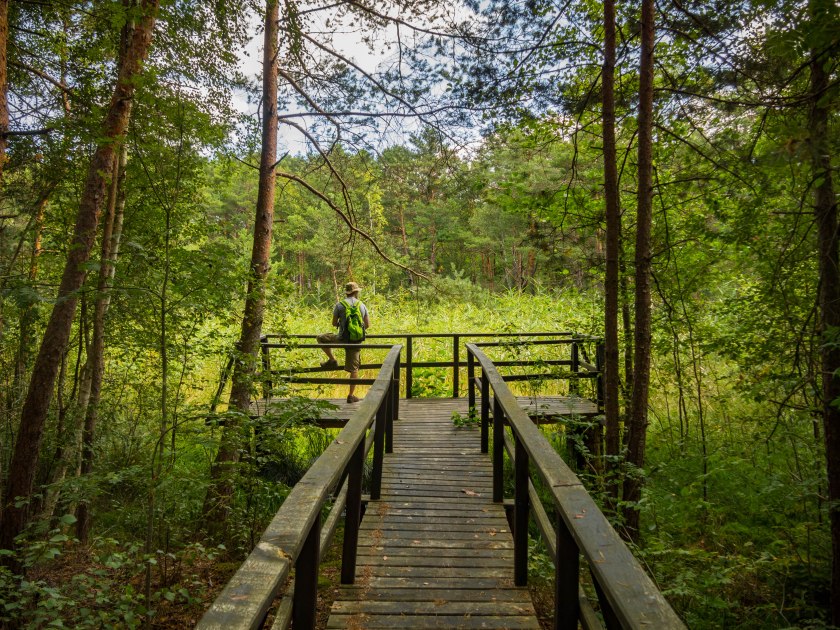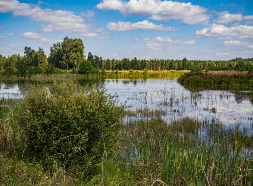 Rezerwat jest niewielki, ma raptem 40 hektarów. To miks boru bagiennego z torfowiskami przejściowymi (oczywiście, że wiedziałem to wcześniej, każdy wie o takich oczywistościach ;)). Najważniejsze, że znajdziecie tam wiele roślin rzadkich i takich, które wymagają ochrony – można na ten przykład dowiedzieć się, że istnieje konkretna roślina nazywająca się… bagno zwyczajne. A i największego pająka występującego w Polsce, bagnika nadwodnego da się tam spotkać. Chyba jego ;p Po drodze zatrzymać możecie się na pikniku przy wiacie a w sercu rezerwatu wejść na niewielki pomost… z którego widoki są jednak mocno ograniczone. Czego nie można powiedzieć o brzegach kilku wspomnianych wcześniej stawów.