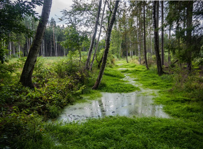 Rezerwat „Borówki”. Ten malowniczy rów jest akurat dziełem człowieka, choć przez lata zdziczał konkretnie.