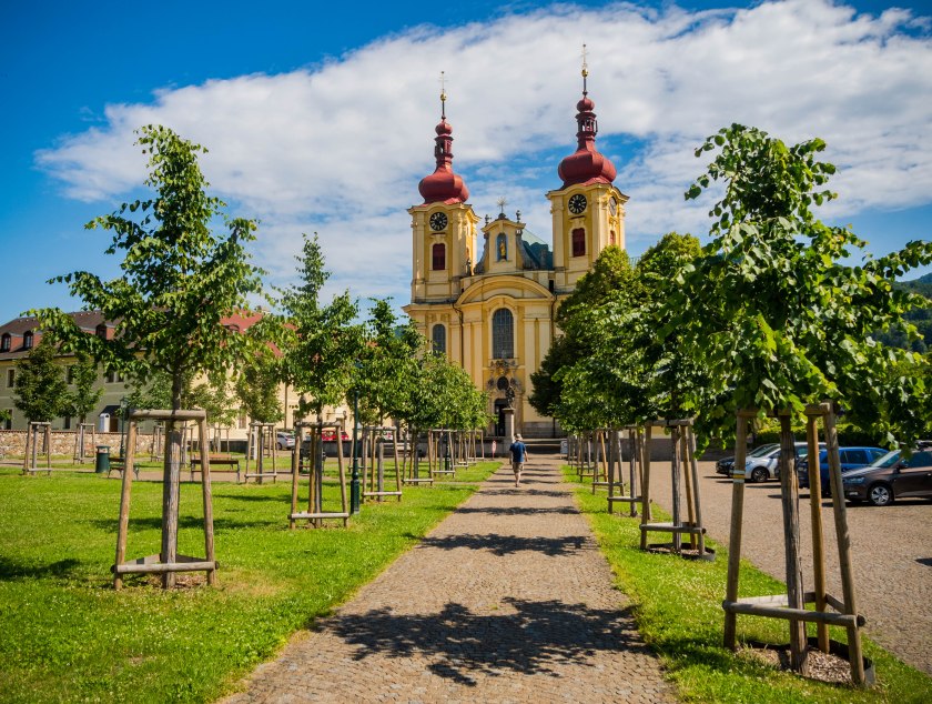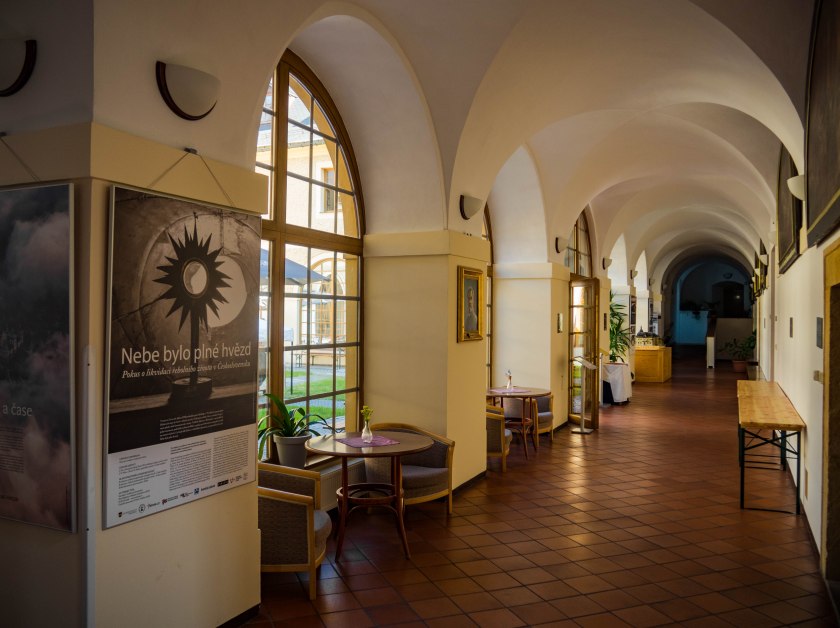 Nocleg złapaliśmy w dawnym, XIX wiecznym w proweniencji hotelu. Dziś po remontach jako Apartmány Klášterní 84 oferuje bardzo klawe apartamenty, z których widok wychodzi na samiuśką bazylikę. Nieopodal płynie Smeda i jej monotonny szum potrafi nocami utulać do snu. Zaprawdę powiadam wam spoko miejscówka, i jeśli nie przeszkadza wam siłownia na parterze (czynna w tygodniu) to warto się zastanowić. Tym bardziej, że właścicielka przesympatyczna 🙂
