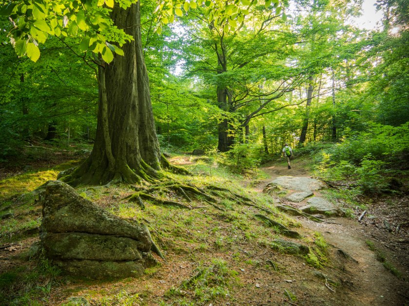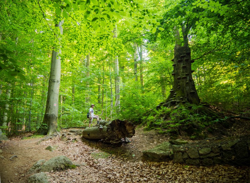 Zdecydowanie więcej tu drzew liściastych niż iglastych a potężne buki mijane po drodze mogą mieć i po 200-300 lat! Nie ma co się dziwić i wiekowi i rozmiarom, podchodząc na Ořešník wchodzi się na teren Narodowego Rezerwatu Przyrody Jizerskohorské bučiny, największego w kraju kompleksu buczyn. Od roku wpisanego na Listę Dziedzictwa Przyrodniczego i Kulturowego UNESCO a dokładniej do drużyny Pierwotnych lasów bukowych Karpat i innych regionów Europy. Dlatego (choć wiem, że wam raczej mówić tego nie muszę) wędrując tam zachowujcie się, nie świrujcie pawiana i nie zaśmiecajcie szlaków.