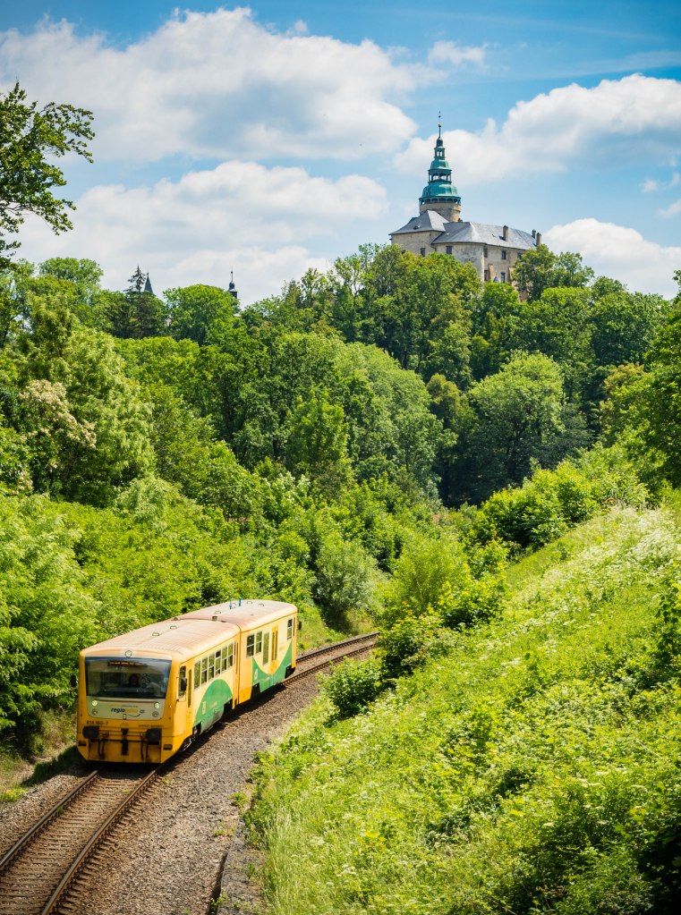 Planując podróż pociągiem trzeba liczyć się z co najmniej jedną przesiadką. Start ze Szklarskiej Poręby do Liberca a stamtąd bezpośrednio do Hejnic, lub też z dodatkową przesiadką w niewielkiej Raspenavie. Połączenia są na tyle miło rozpisane, że podróż idzie jak po sznurku, przesiadki są szybkie i sprawne. A i tak wszystko trwa prawie 2 i pół godziny bo do zrobienia jest całkiem pokaźna pętla licząca 80 kilometrów spośród których wiele to mozolne pokonanie karkonoskich i izerskich pagórów. W jedną stronę wychodzi 184 korony, tak więc korzystne wydaje się dokonanie zakupu biletu EURO-NYSA którego cena za jeden dzień to zaledwie 160 koron – mamy więc i niższą cenę i totalną elastyczność w razie zmiany planów, obsuw itepe.