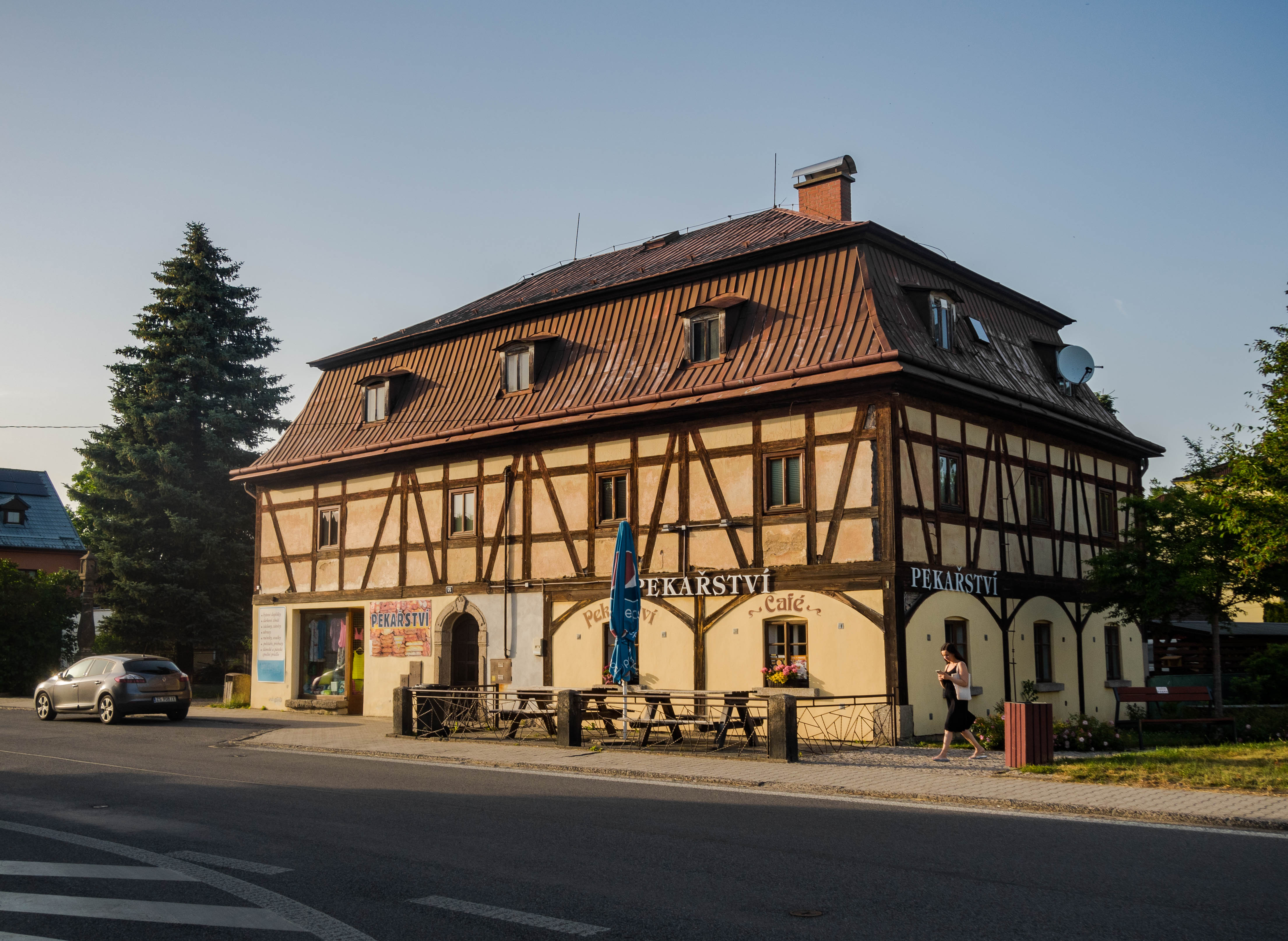 W XIX wieku okolice Gór Izerskich stały się zagłębiem przemysłu szklarskiego lecz Hejnice w tym temacie niewiele miały do powiedzenia. Samemu nie uczestnicząc bezpośrednio w szklarskim biznesie mogą pochwalić się jednak czymś innym. To tutaj w 1816 roku urodził się Josef Riedel, jegomość, który w kolejnych latach złotymi zgłoskami zapisze się w historii jako… „Król szklarzy Gór Izerskich”. Strasznie łebski człowiek, mający smykałkę do interesów, świetnie adaptujący się do wciąż rozwijającego świata. Dom, w którym się urodził do dziś stoi w centralnym punkcie miasta, łatwo go rozpoznacie: to absolutnie zjawiskowa konstrukcja ryglowa z murem pruskim (tak, spod tynku da się dostrzec cegły). Całości dopełnia mansardowy dach. I tylko współczesne reklamy piekarni trochę mi tu nie pasują. Olbrzymi żyrandol na jaki z pewnością zwrócicie uwagę podczas wizyty w bazylice, to również zasługa Josefa.