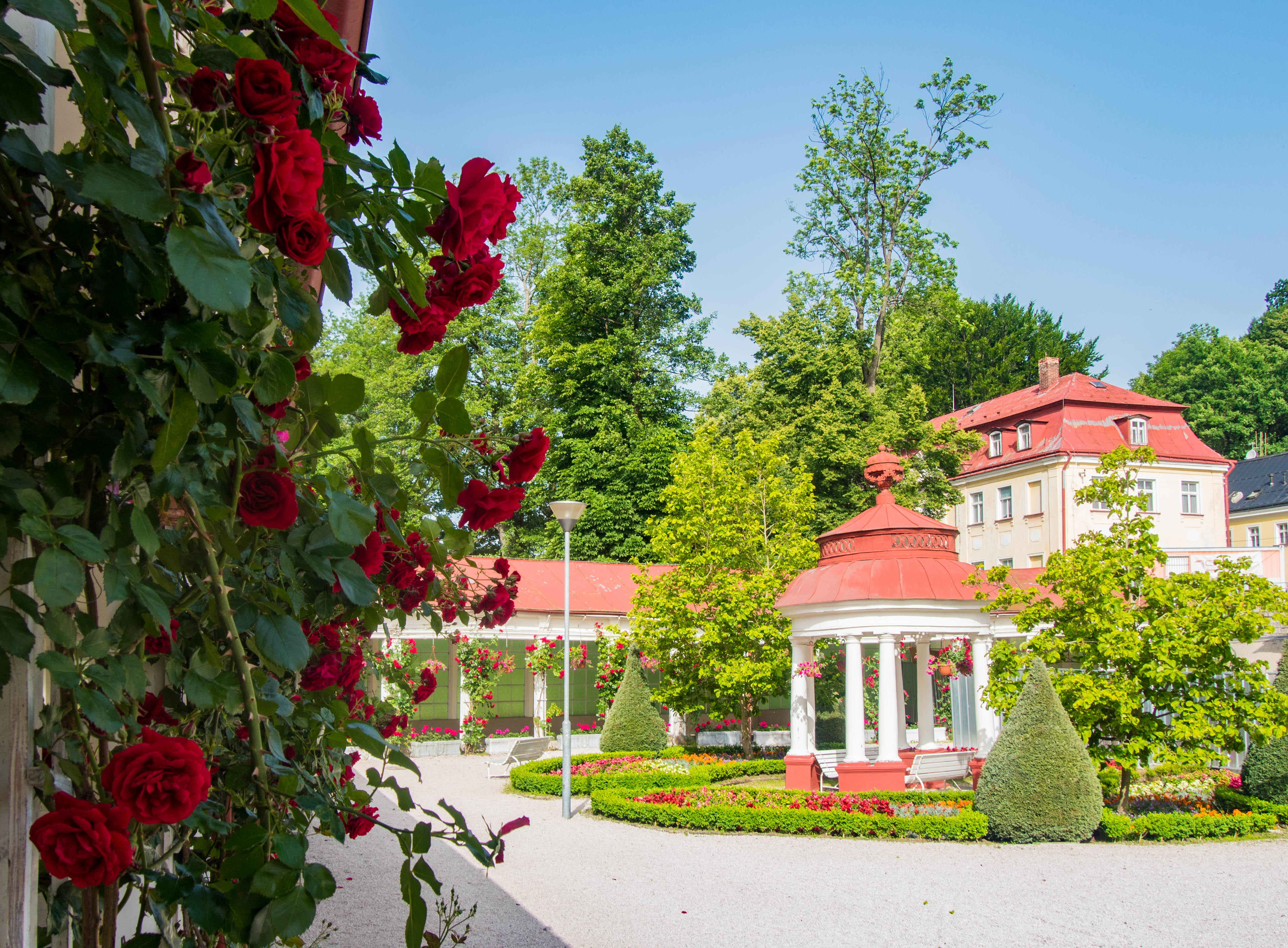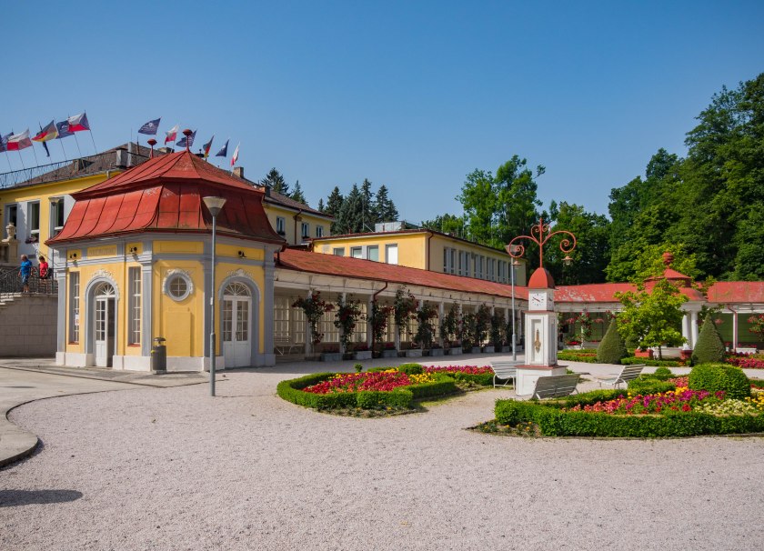 Rozległy park zdrojowy, pamiętający jeszcze założycieli uzdrowiska to miejsce wybitnie przyjemne do spacerów i w gorące dni potrafi dać wiele cienia. Pomiędzy drzewami zobaczyć można tak wiekowe, stylowe wille jak choćby Villa Friedland z restauracją Valdstejn (gdzie można wszamać lody) jak i całkowicie XX-wieczny potężny apartamentowiec, Hotel Novy Dum, zdecydowanie mniej kameralny. Gdzieś w parku schowany jest również pomnik samego Wallensteina, ale nie będę wam tu czarował, przegapiliśmy go.