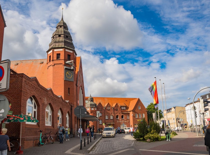 Stralsund kocha cegłę. Podczas spaceru po Starym Mieście będziecie mieli przekonać się o tym nie raz, lecz już na samym Dworcu Kolejowym można poczuć przedsmak. To miły oku budynek z początku XX wieku ze zdecydowanie wartym zobaczenia holem, na którego ścianach znajdziecie wielkie malowidła przedstawiające miasto jak i Rugię. Autor, Erich Kliefert to też nie byle kto, postać dla miejscowej sztuki wielce zasłużona, nauczyciel wielu pokoleń grafików i malarzy, w końcu Honorowy Obywatel Stralsundu.
