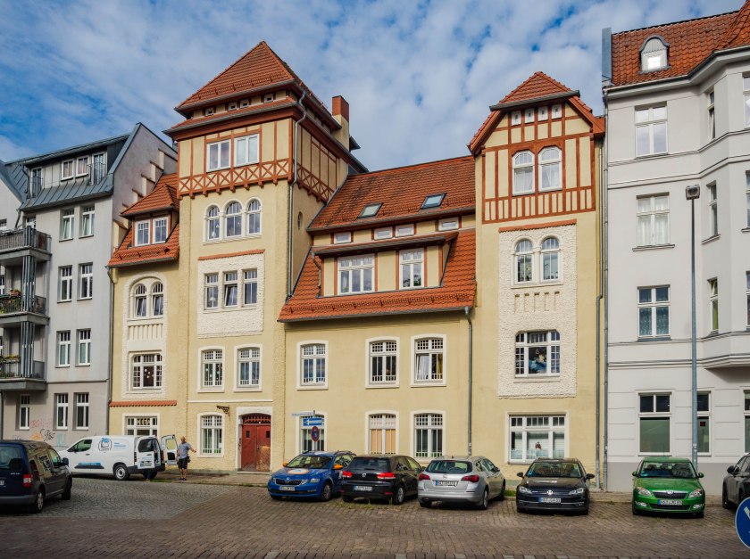 Podbijając stawkę. Kolejną grupę stanowi mieszanka wybuchowa, ale wielce oku przyjemna. Jedna po drugiej kamienica neorenesansowa, gotycka oraz gotycka przerobiona na barokową. To m.in. zjawiskowy „Dom Wulflamów” z imponującą fasadą, należący ongiś do jednej z ważniejszych rodzin w mieście, na przełomie XIV i XV to z owej familii pochodzili burmistrzowie Stralsundu.