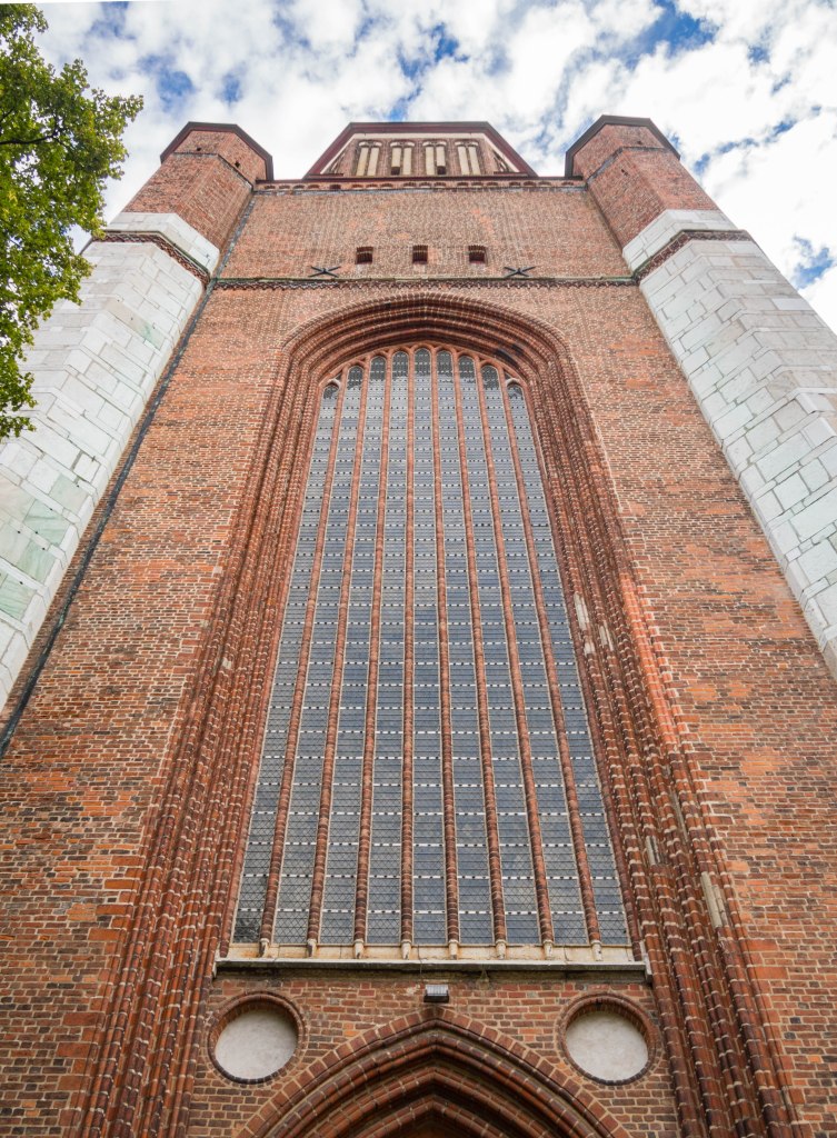 Wysoka, masywna i strzelista wieża kościoła Mariackiego przykuwa wzrok z daleka. Od strony dworca wybija się na tle niższych zabudowań. Kilkaset lat temu w ogóle musiała zapierać dech w piersi – wyższa wtedy o dodatkowe 45 metrów uznawana była za najwyższy budynek świata! Dziś mierzy „tylko” 104.