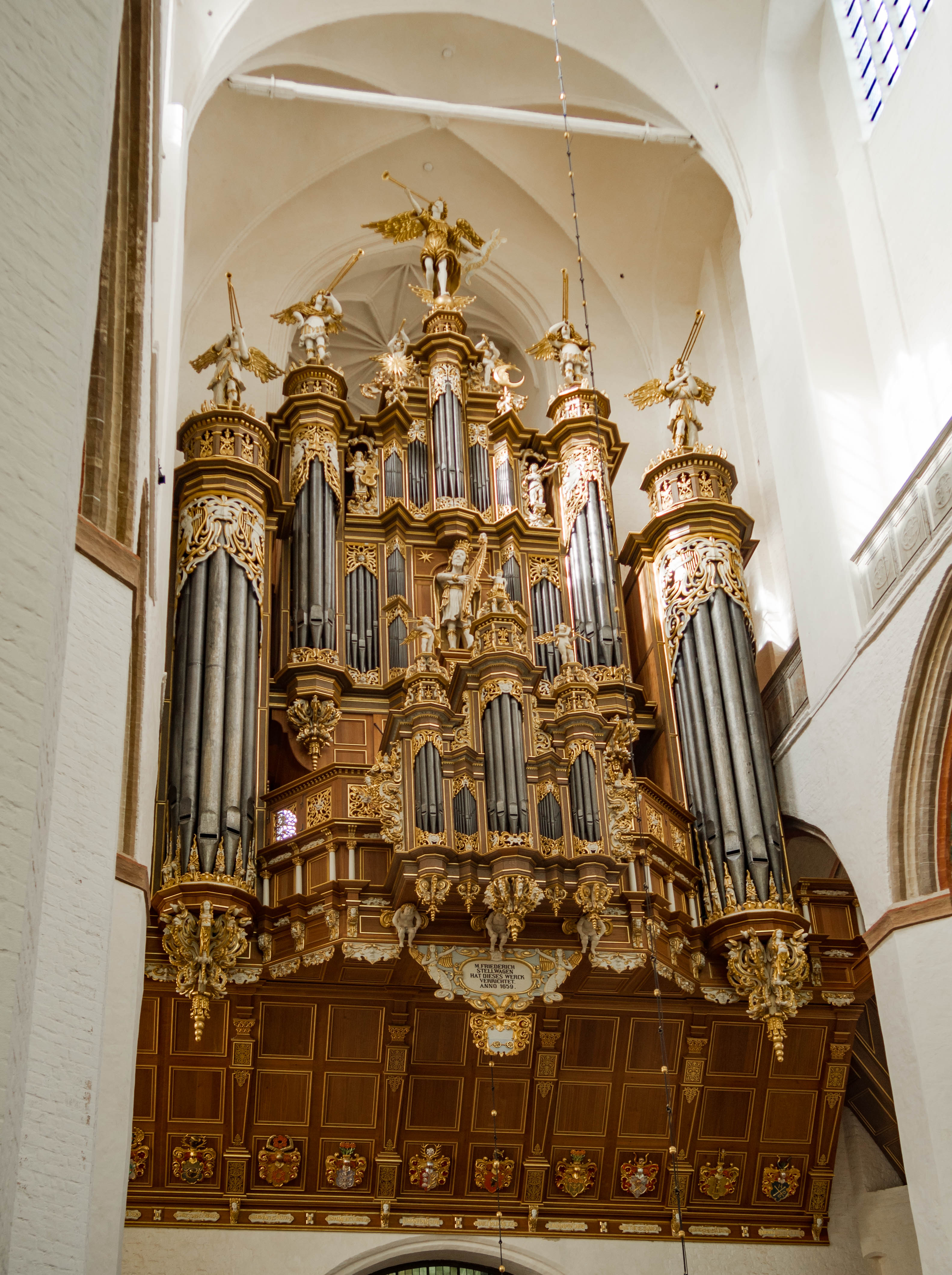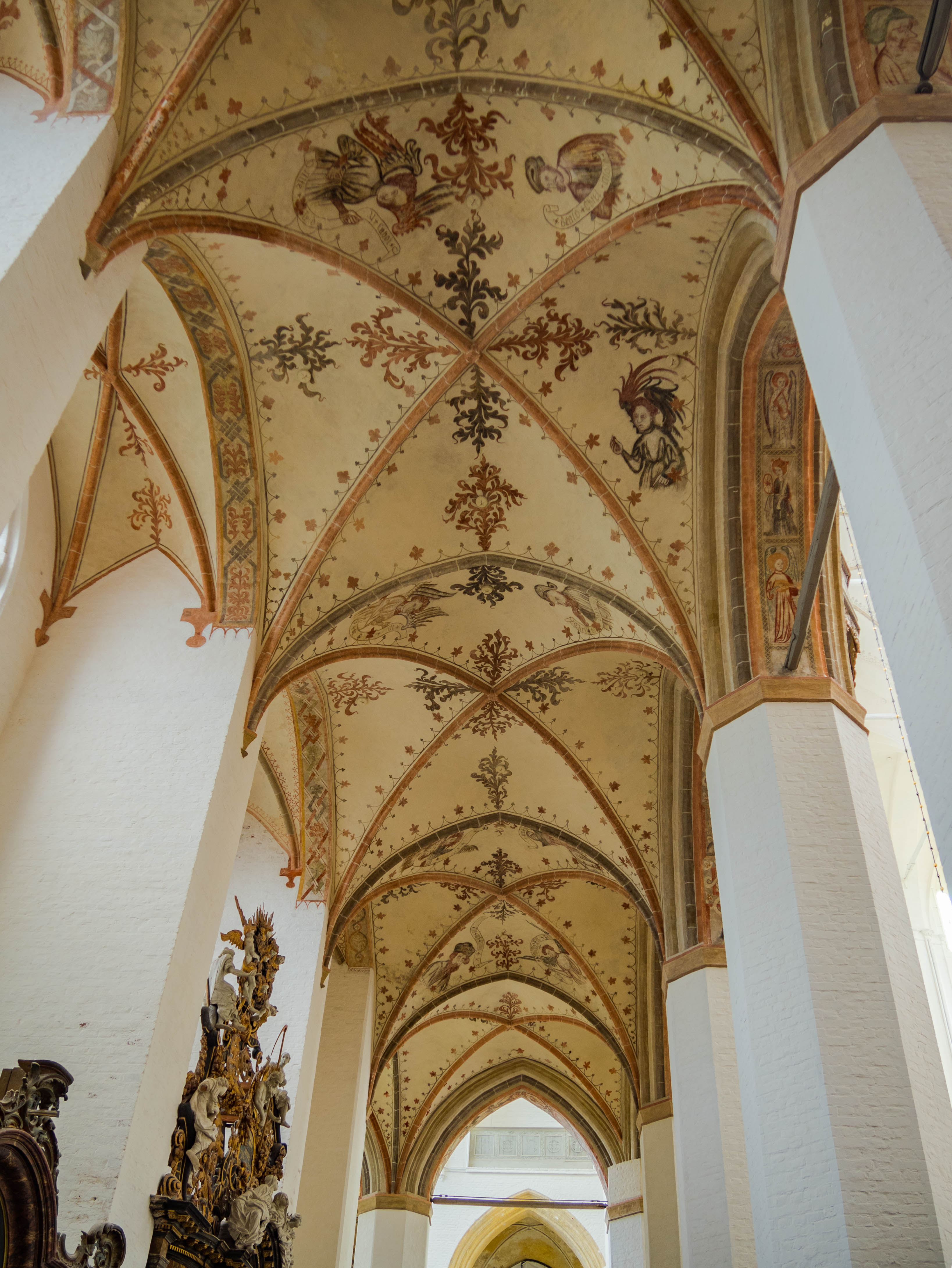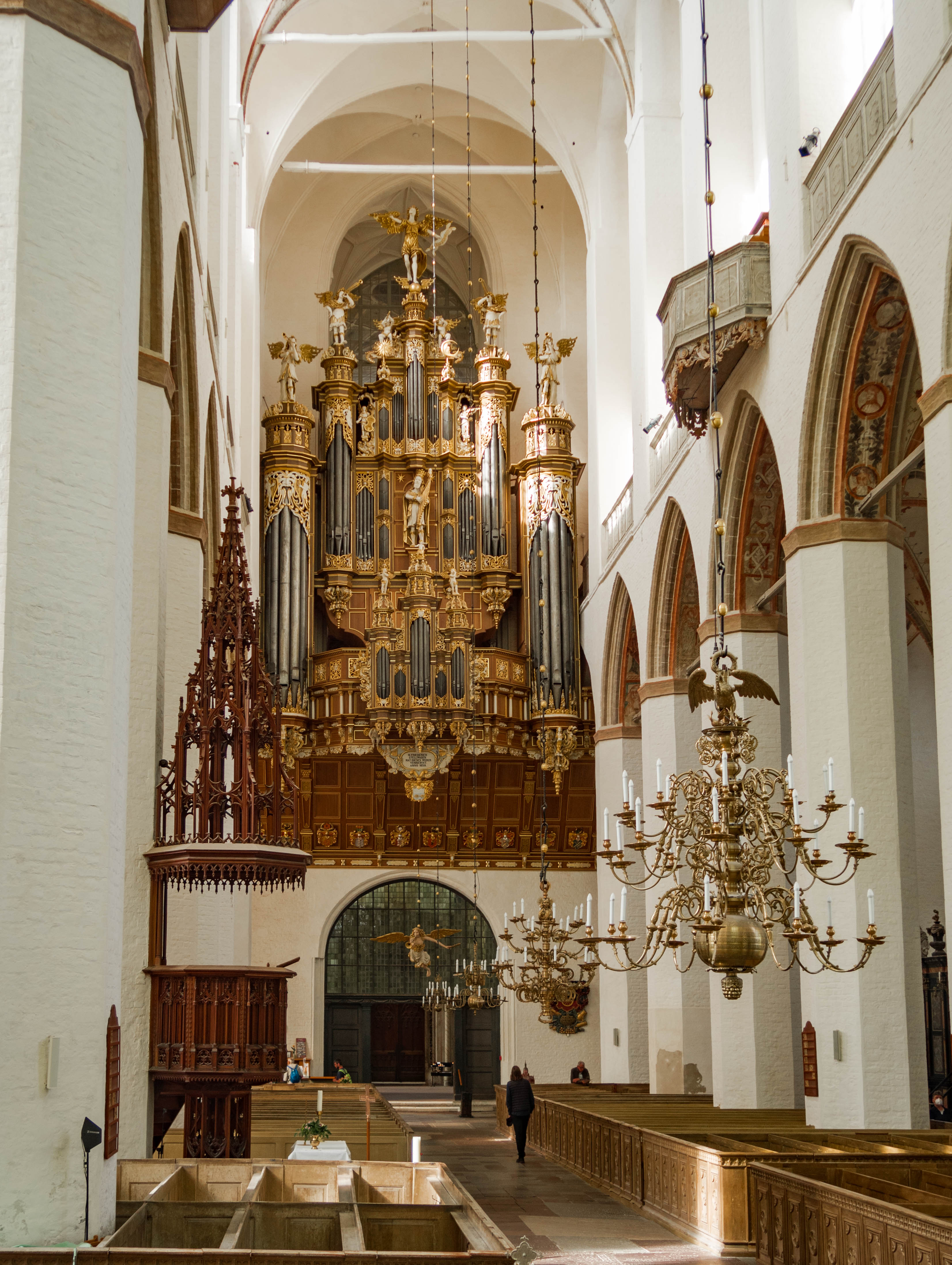 Zdecydowanie zalecam zajrzeć do środka. Potężne przestrzenie gotyckich kościołów zawsze robią na mnie wrażenie, tym razem do obrazów dołączył dźwięk – akurat trwało strojenie olbrzymich organów, barokowego cuda. Niezwykłego gabarytami jak i zdobieniami. Taką barokową ingerencję w gotyk mogę przyjąć.