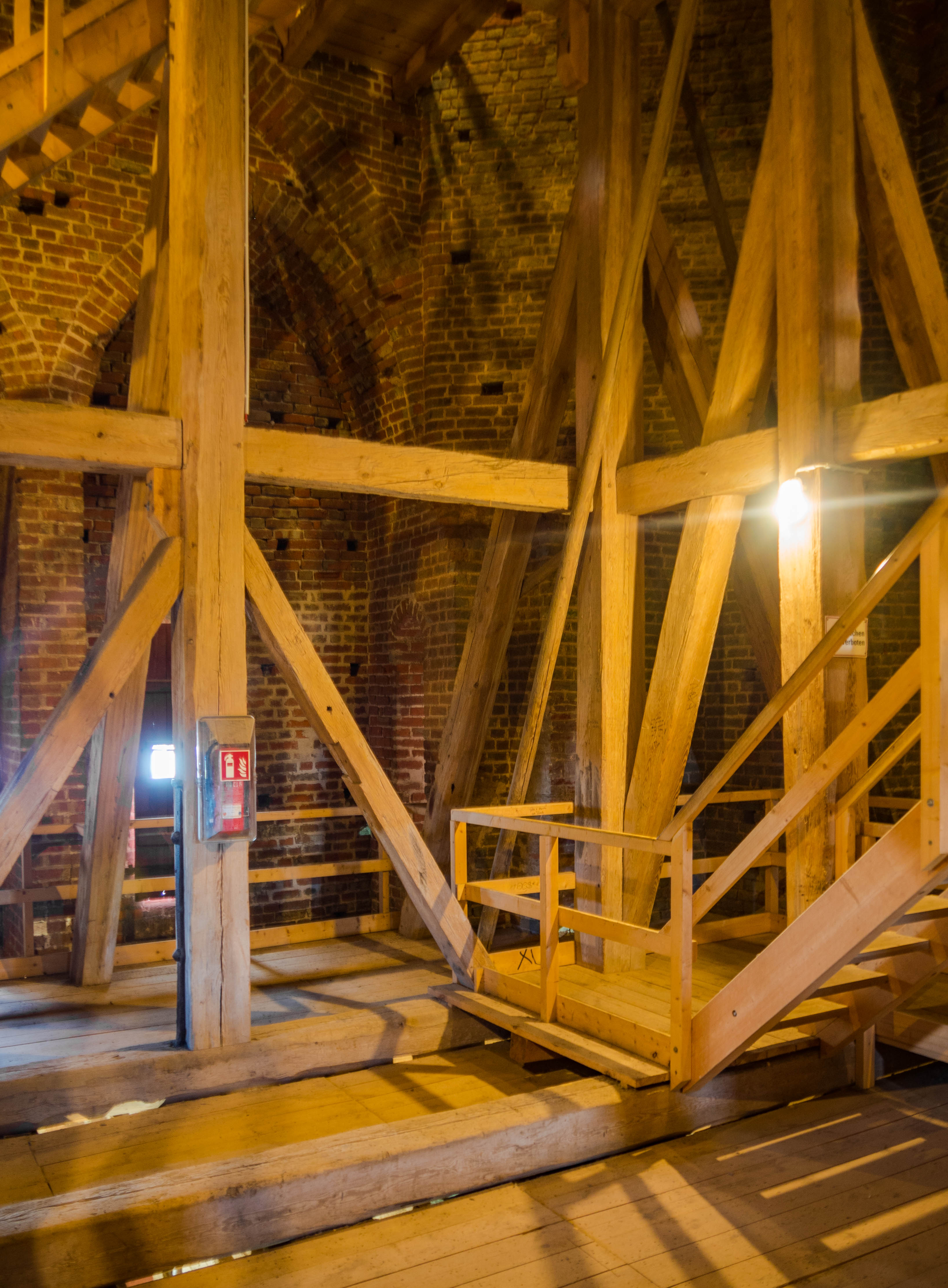Zwiedzanie kościoła jest darmowe. Za wyjątkiem jednej rzeczy. Wejścia na wieżę. To kosztuje 5 euro i powiadam wam, warto. Przeszło 350 schodów, pierw w wąskiej murowanej części, potem w drewnianej – ktoś mądrze pokombinował i by nie tworzyć zatorów wchodzi się schodami po jednej stronie wieży, a schodzi po drugiej. Powiem wam, że można się lekko zmęczyć, ale widoki rekompensują wszystko.