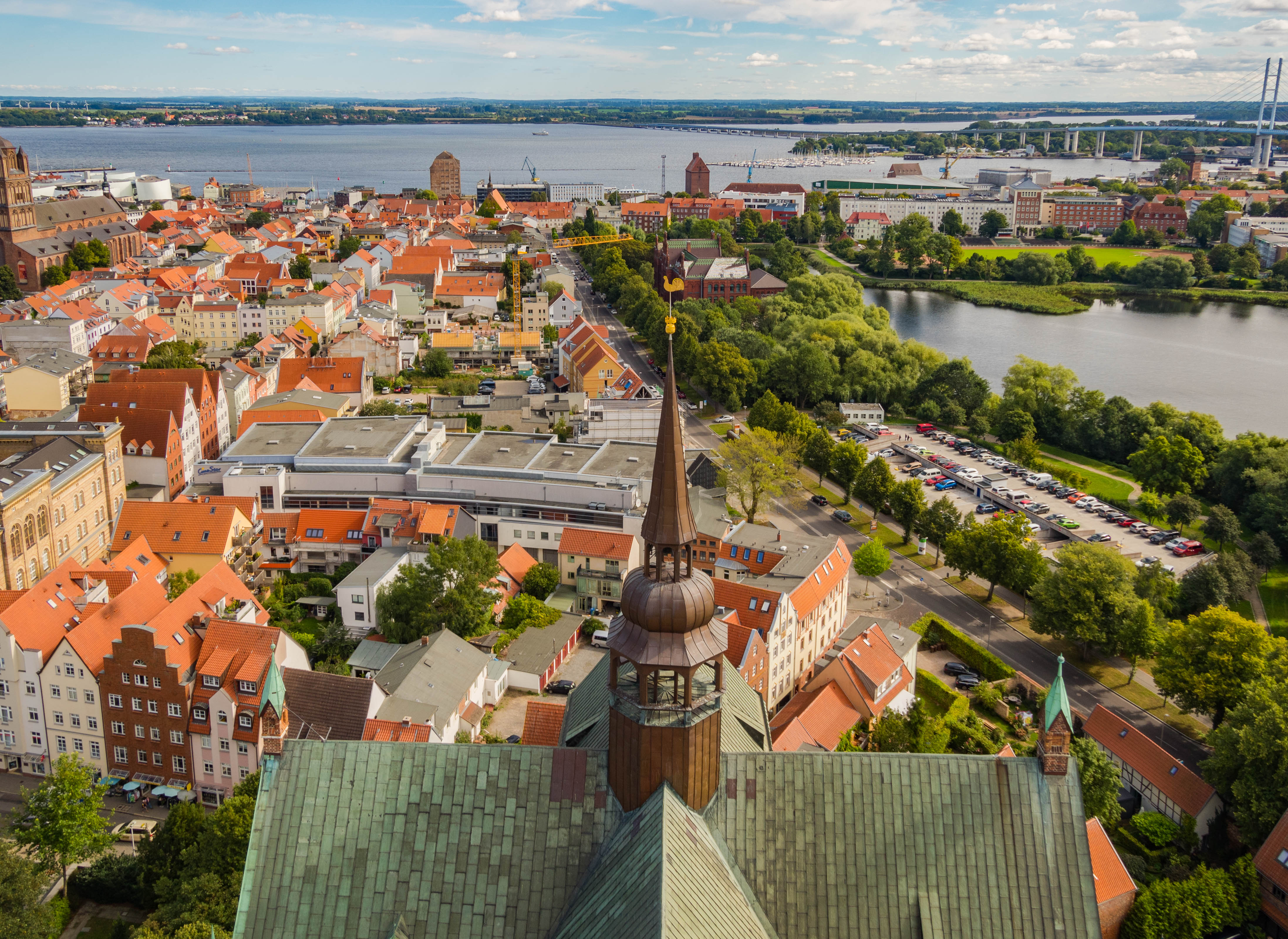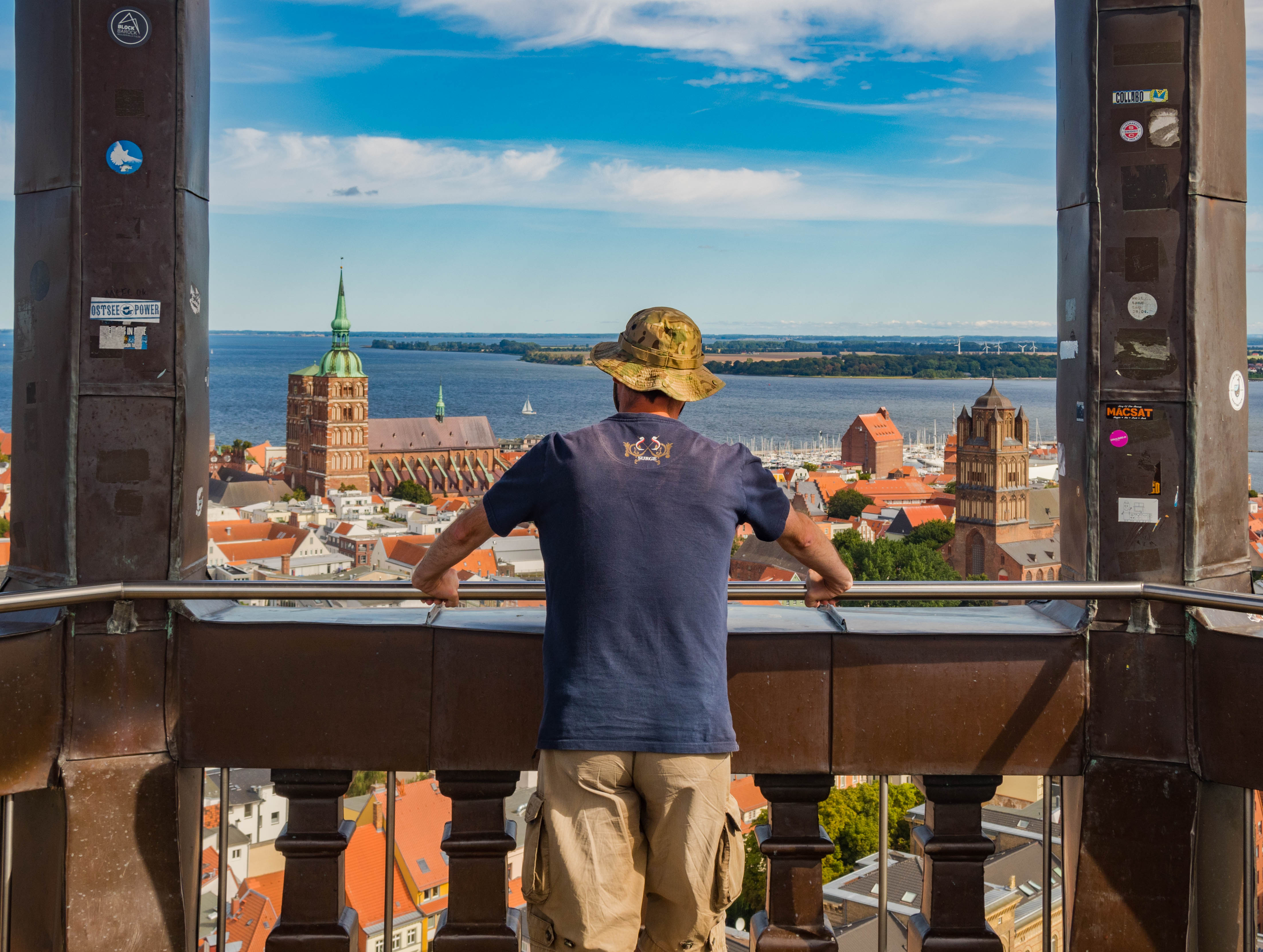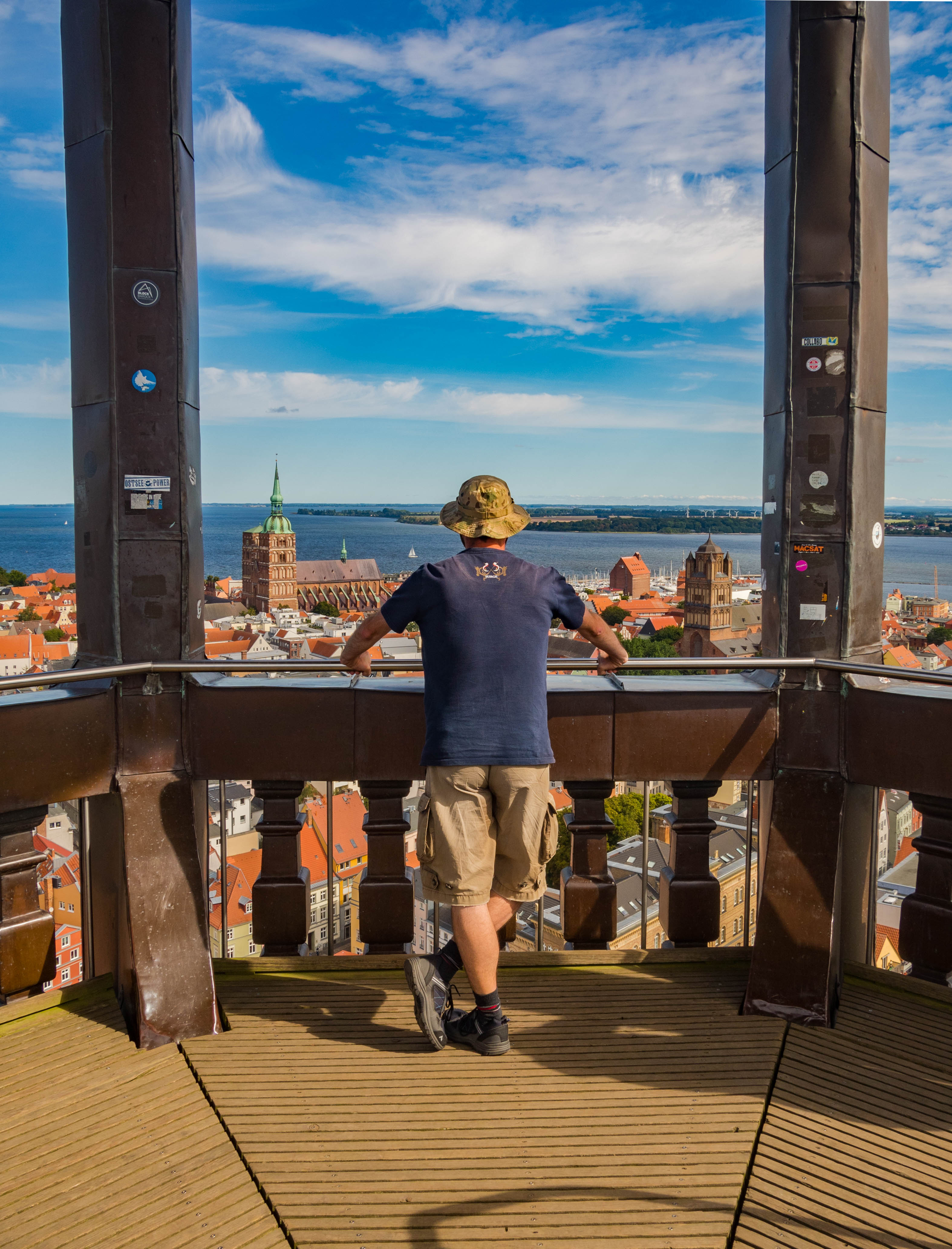 Cóż tam widać? No w sumie to caluśkie miasto, SPORY kawałek Rugii a przy dobrej pogodzie i Hiddensee. Spoglądając na samo miasto widać wszystkie najważniejsze sakralne zabytki, siatkę uliczek z równie zabytkowymi kamienicami, nadmorskie spichlerze, Oceanarium oraz marinę pełną jachtów, czy w końcu okoliczne stawy. Widać DUŻO i efektownie.