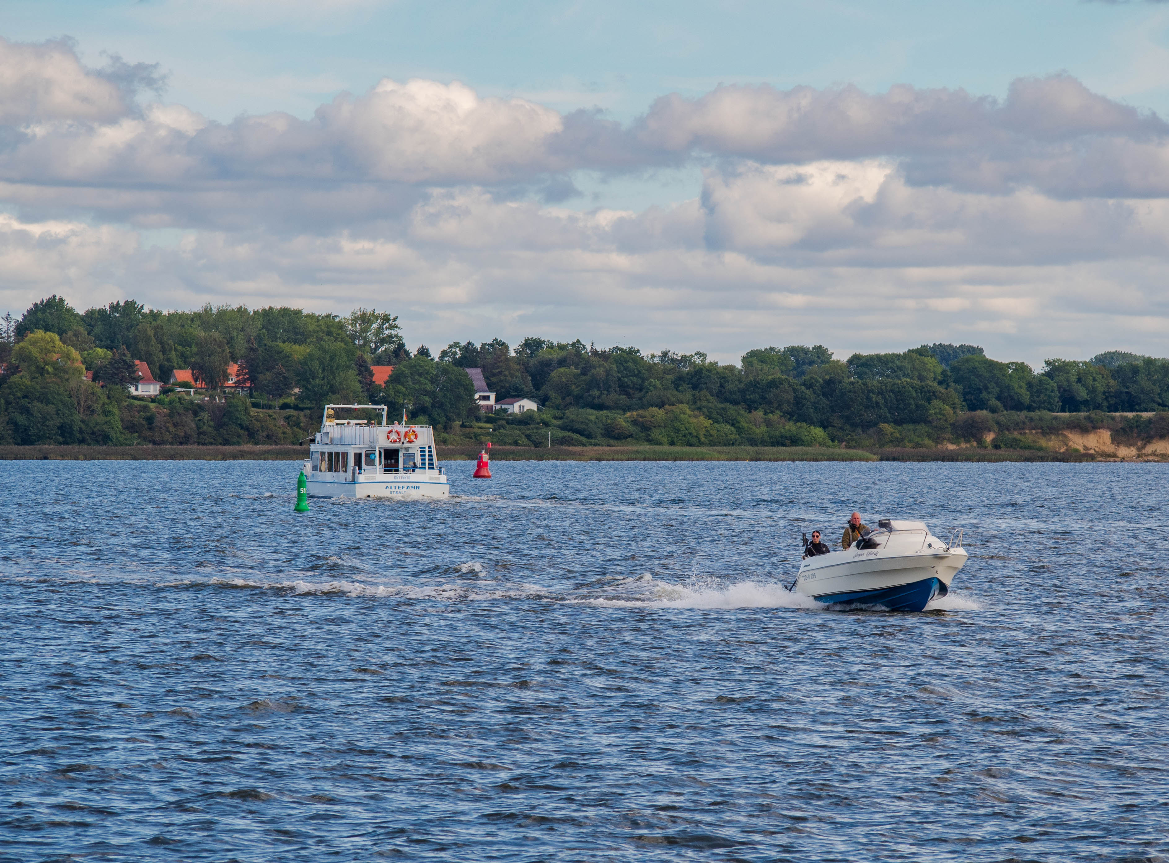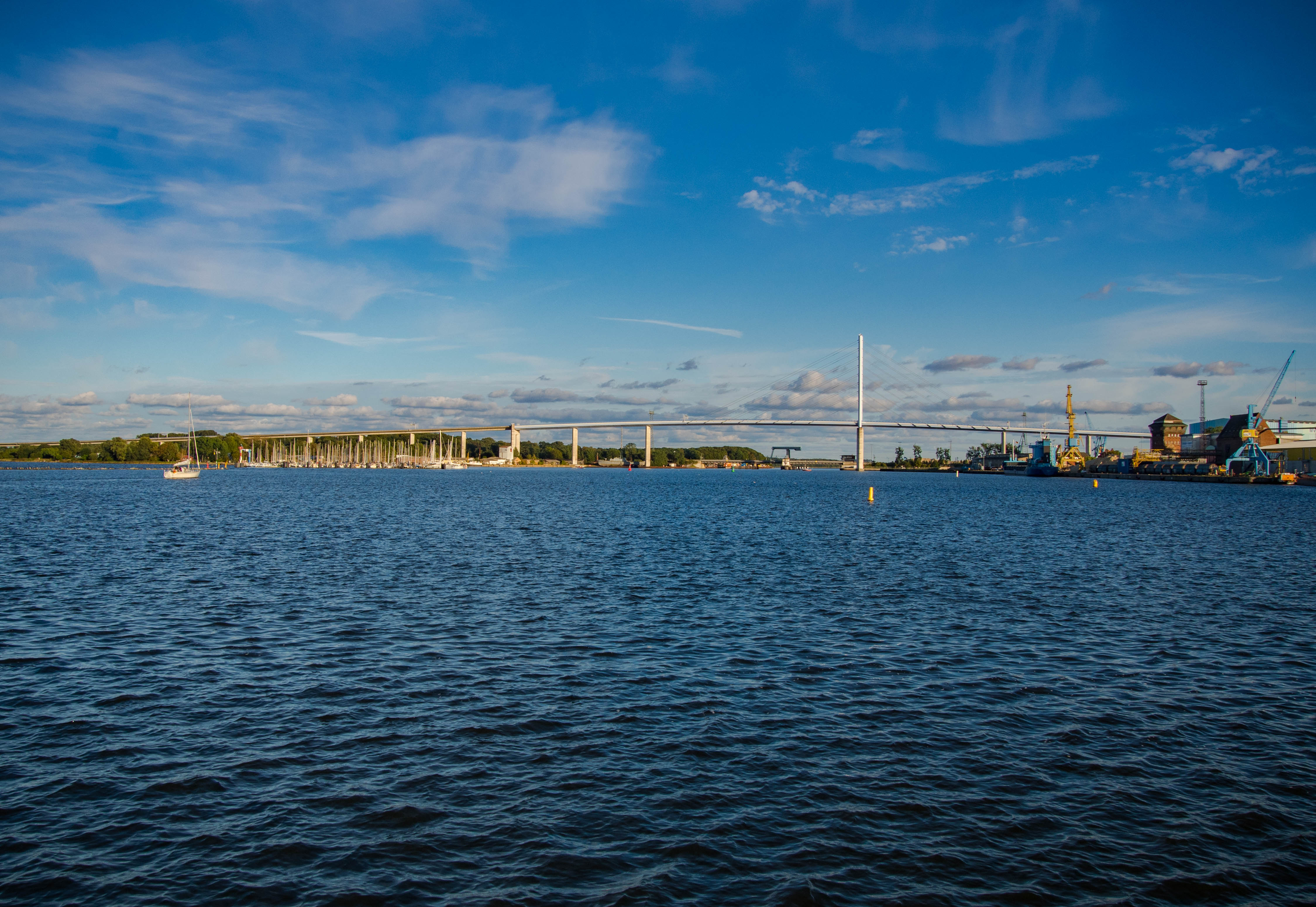 Ruszamy kawałek, w stronę mariny. Na betonowym molo wędkarze liczą na udany dzień, miejscowi muzykanci podobnie mają nadzieję na hojność turystów. Wody cieśniny raz po raz przecinane są przez pojedyncze motorówki i jachty. Rugia wydaje się być na wyciągnięcie ręki. Wzrokiem śledzimy samochody pokonujące nowy most, Rügenbrücke. Długa na 4 kilometry konstrukcja powstała na początku XXI wieku odciążając starszą drogę Rugendamm, która sama po prostu nie dawała już rady w obsłudze coraz większych tłumów odwiedzających wyspę.