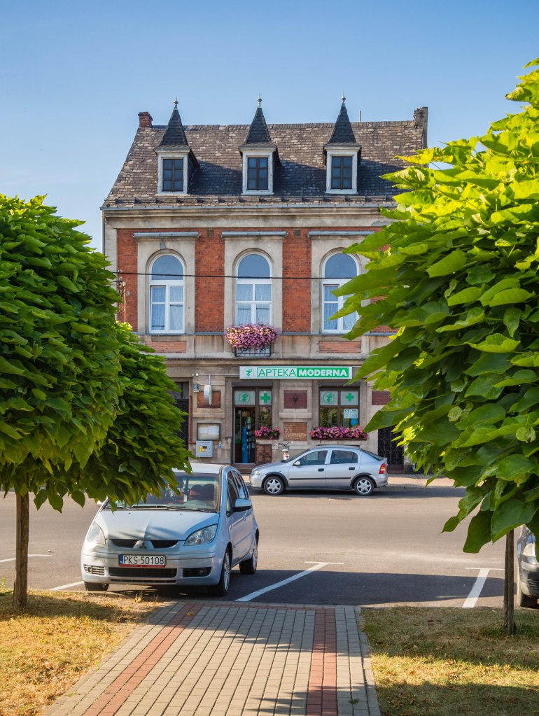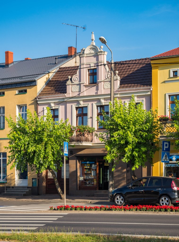 Ulica prowadząca na rynek jest typowa dla niewielkich miejscowości. Niskie domy, gdzie dwa piętra są już ekstrawagancją poprzedzielane starszymi budynkami użyteczności publicznej, ot choćby gmachem poczty z końca XIX wieku. Swoją drogą pocztowe dzieje sięgają tu do czasów „Poczty saksońskiej” a raczej jej wariacji, łączącej Poznań z Dreznem. Co jest godne pochwały to fakt, że najważniejsze i najciekawsze miejsca w mieście oznaczone są tabliczkami, albo co jeszcze fajniejsze zdjęciami na tzw. szklanych pocztówkach.