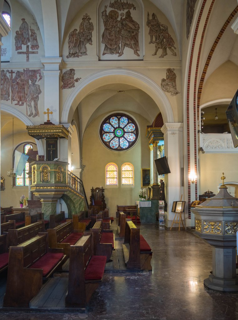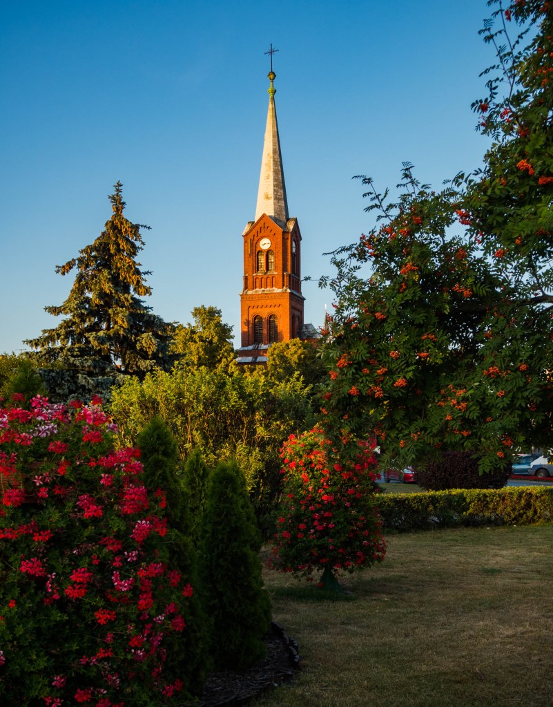 Na wschodnim krańcu rynku przycupnął sobie neogotycki (z neoromańskim wstawkami) kościół pw. Św. Michała Archanioła. Nie ma szans byście go przeoczyli bo wysoka, strzelista wieża góruje w zasadzie nad całą miejscowością i widać ją niemal z każdego jej kąta – co zresztą już na kilku fotografiach mogliście zauważyć.