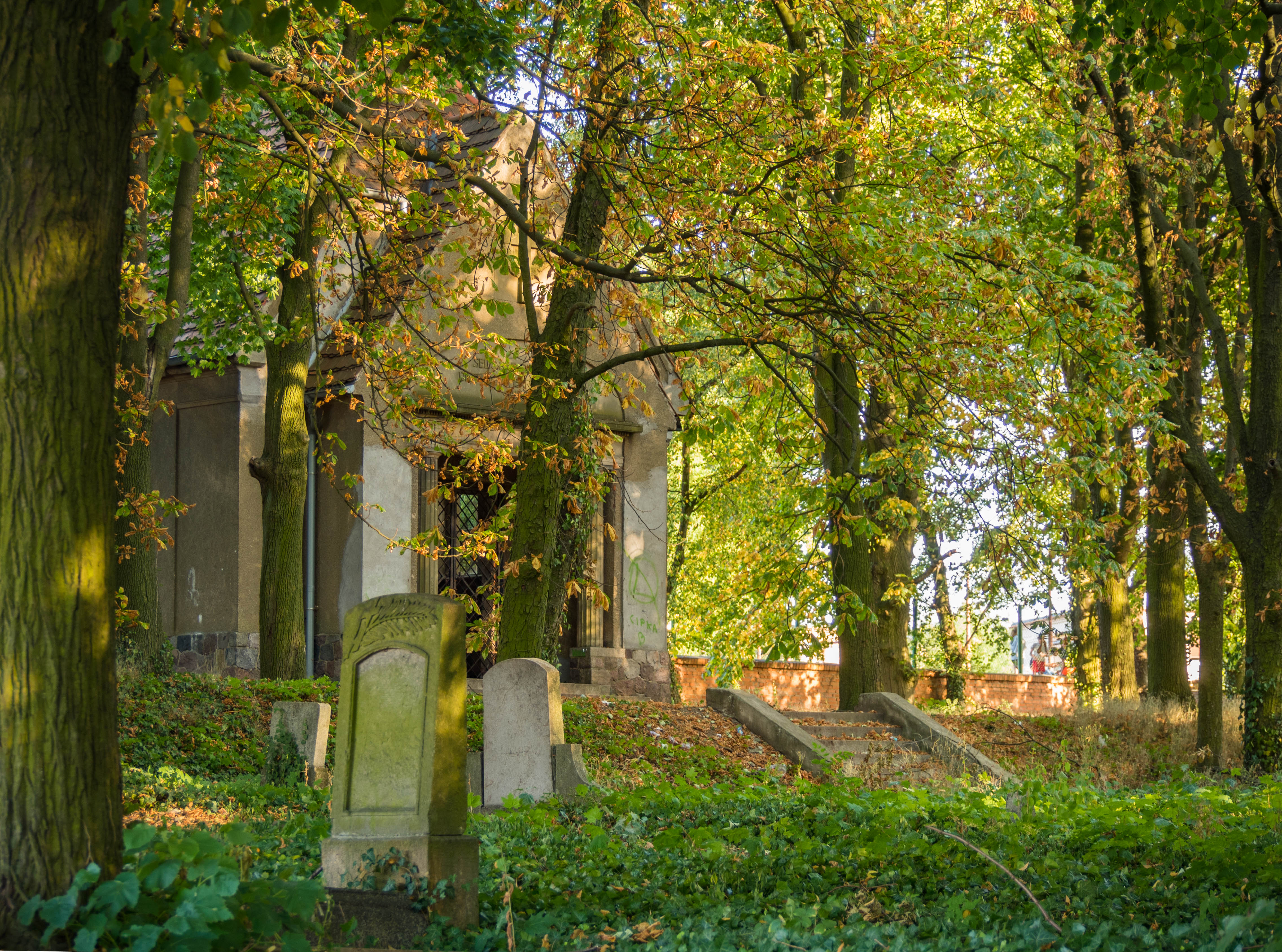 Przez sto lat funkcjonowania pochowano nań wiele ważnych dla miasta osobistości, właścicieli ziemskich, burmistrza Juliusa Wende, członków rodziny Delhaes, wybitnych rzemieślników. Nad nekropolią góruje kaplica ufundowana przez Ferdynanda Delhaesa a zaprojektowana przez Paula Pitta, którego kojarzyć możecie z Poznania. Wiele imponujących secesyjnych kamienic choćby z ulicy Dąbrowskiego to jego dzieła.