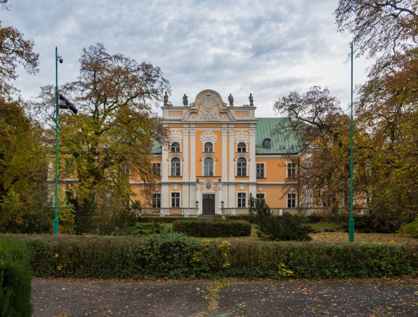 Co was pewnie najbardziej interesuje to dzisiejszy stan. A więc tak, pałac wciąż prezentuje się okazale, jeszcze do niedawna był własnością firmy, która organizowała weń szkolenia, i różnego rodzaju imprezy integracyjne, tego typu staff. Aktualnie jednak budynek zamknięty jest na cztery spusty, wystawiony jest na sprzedaż i jeśli tylko macie na podorędziu 4 MLN złotych to jest wasz 😉 A serio, to wielka szkoda, że tak piękny pałac stoi i niby jest na wyciągnięcie ręki a jednak kryje się za dość gęstym drzewostanem równie zabytkowego parku.