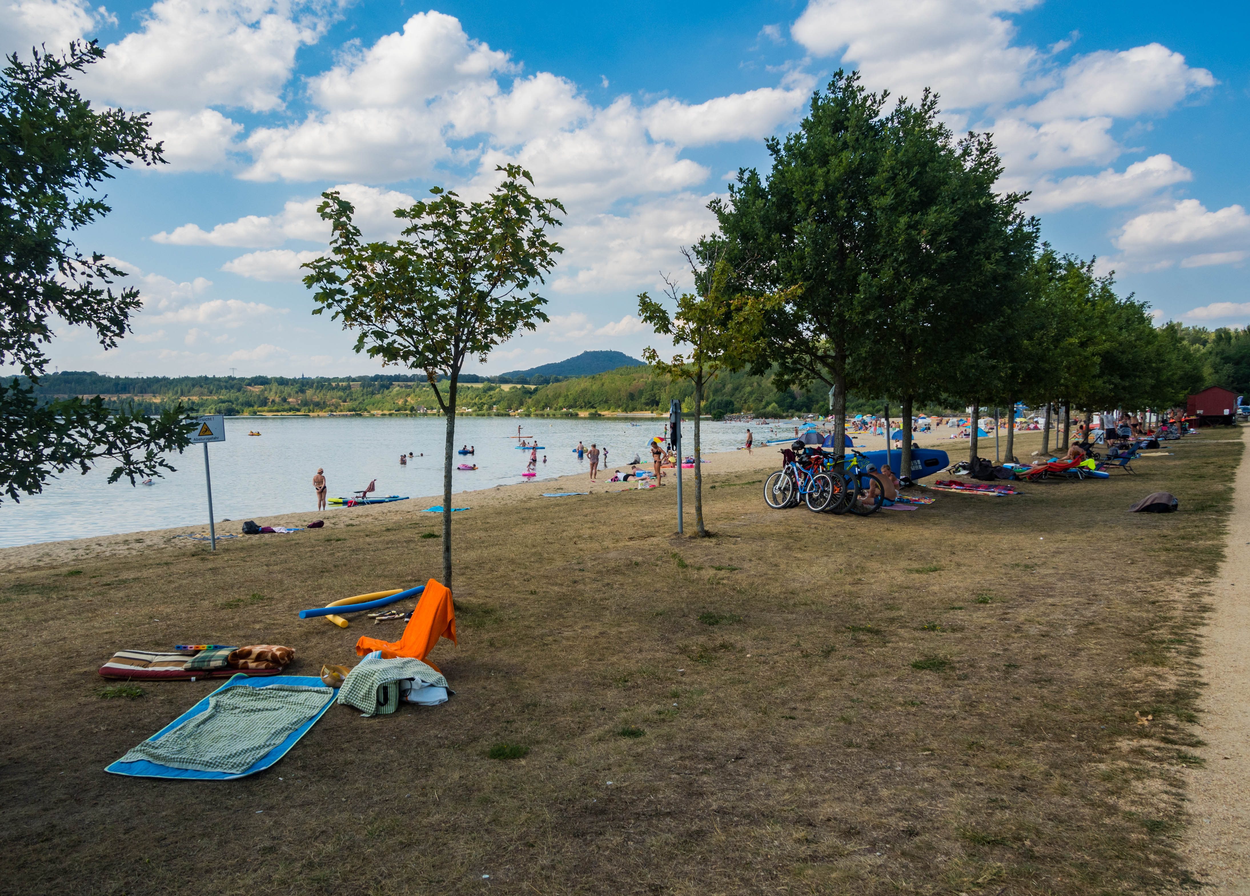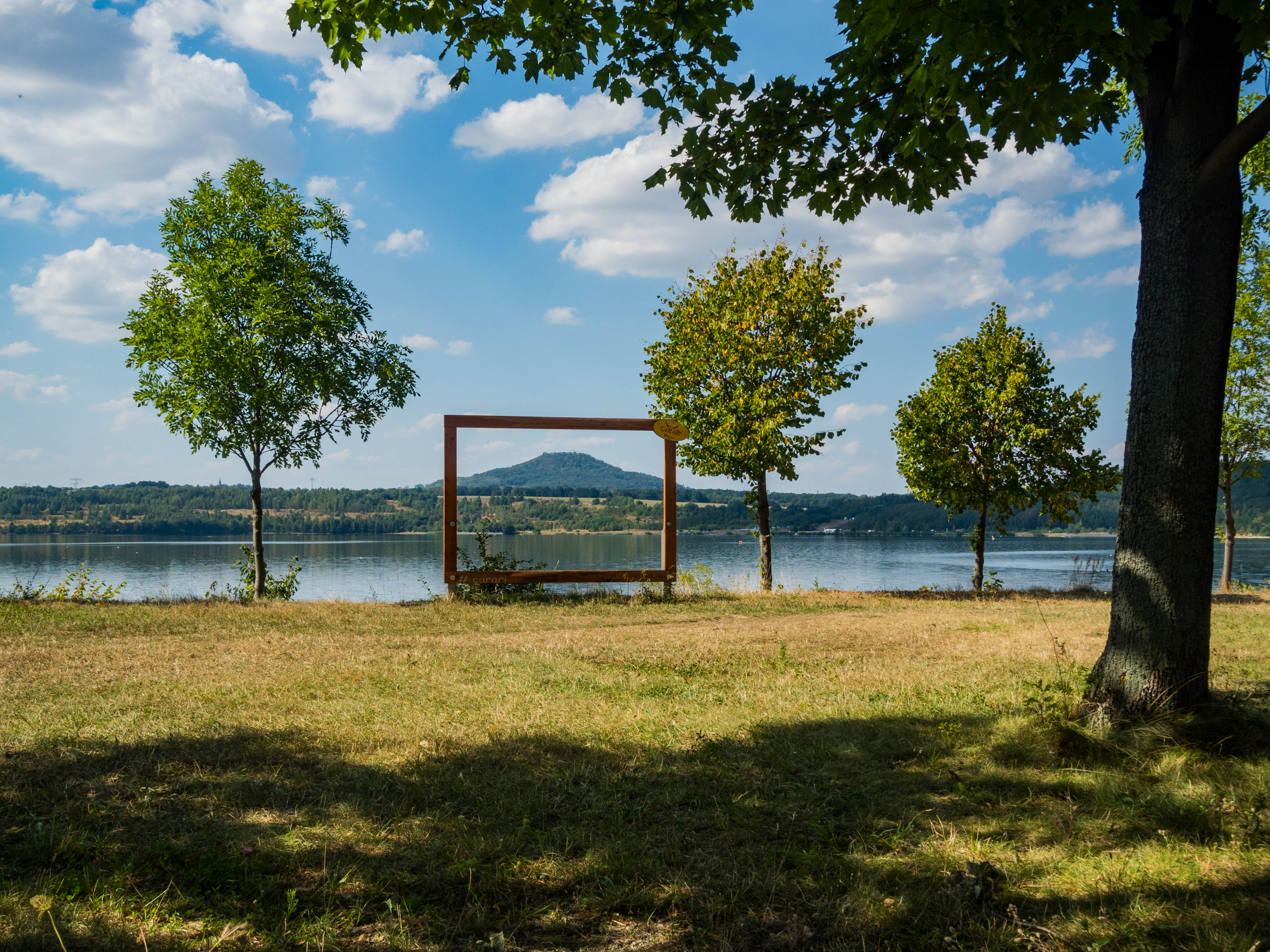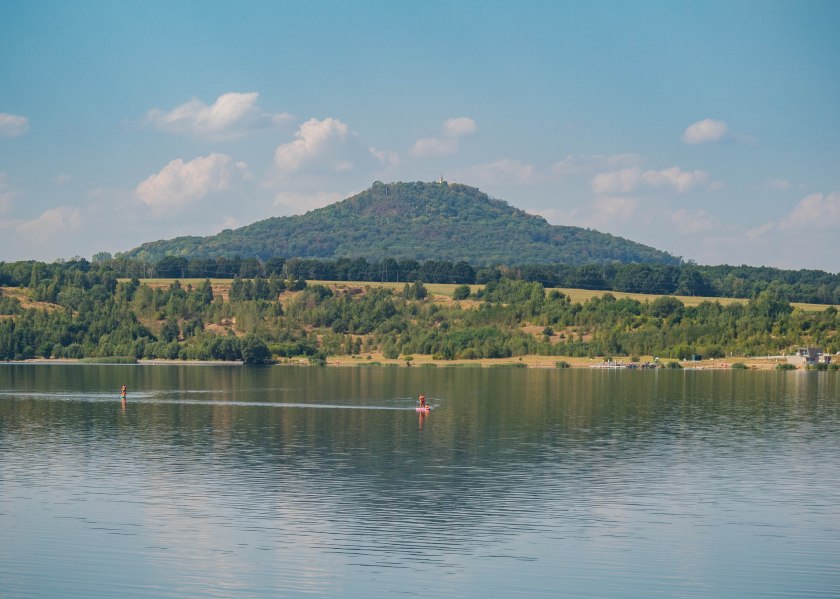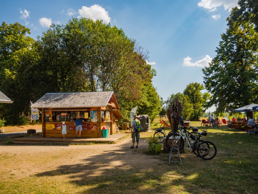 Na miejscu znajdziecie plac zabaw, małe gastro gdzie kupicie lody, miejscowe piwko czy też brat/bockwurtsy (koniecznie z musztardą). My, uzbrojeni w buły z kiełbasą decydujemy się podziwiać okoliczne krajobrazy – najbardziej znany wulkan w okolicy z początku nieśmiało chowa się za horyzontem, z kolei bez większych problemów widać na odległym brzegu wieżę widokową Neuberzdorfer Höhe. W ogóle widoczki podczas całego spaceru: prima sort.